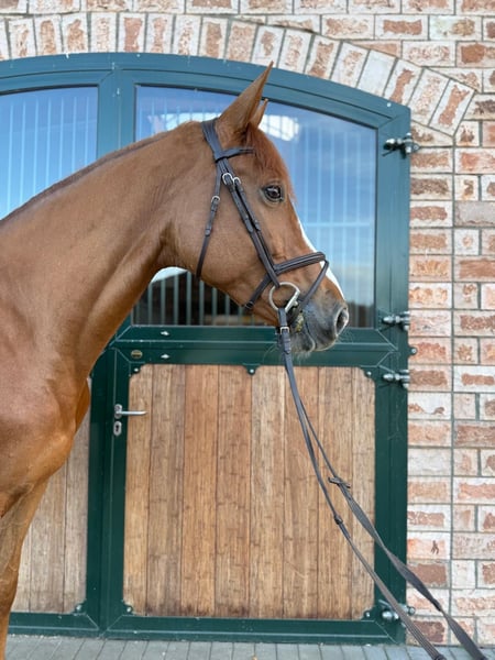 Diese wunderschöne Fuchstute mit einer Größe von ca. 1,75 m überzeugt mit Charme, Ausdruck und einem ausgeglichenen Wesen. Sie zeigt sich sowohl im Springen als auch in der Dressur sehr rittig und angenehm zu reiten. Besonders im Parcours weiß sie zu überzeugen – mit viel Vermögen, einer guten Technik und der nötigen Vorsicht. Im Umgang ist sie stets brav, unkompliziert und freundlich, wodurch sie auch für ambitionierte Freizeitreiter oder Amateure bestens geeignet ist. Unter dem Sattel präsentiert sie sich zuverlässig und leicht zu händeln – eine Stute, die mit ihrer Leistungsbereitschaft und ihrem ehrlichen Charakter jeden Tag Freude bereitet. Auch im Gelände zeigt sie sich immer gelassen und unerschrocken und ist beim Verladen, Scheren oder Schmied absolut unkompliziert und brav.