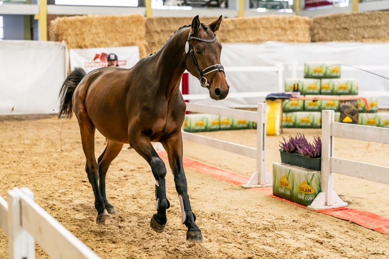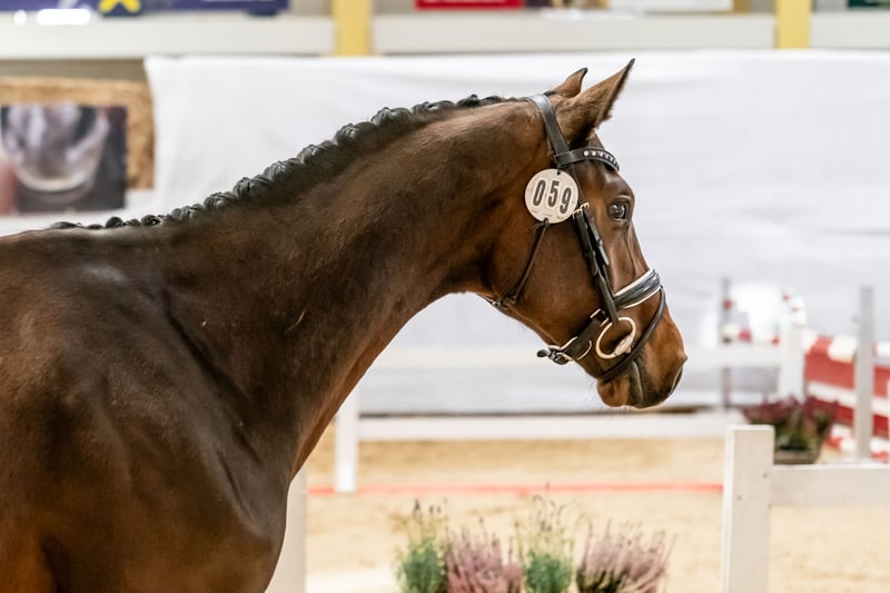Mistrzostwa w skokach przez przeszkody 2025: bardzo dobra ocena ogólna 8,4 (potencjał 8,5) Wyjątkowo dobrze wyczesany i wyprowadzony na lonży Zna kowala, przyczepę i weterynarza Przyzwyczajony do ludzi i bardzo przyjemny w obsłudze Z pewnością będzie koniem na wielki sport, o zrównoważonym i spokojnym charakterze Ojciec: renomowany reproduktor CHARTHAGO BLUE OLD
