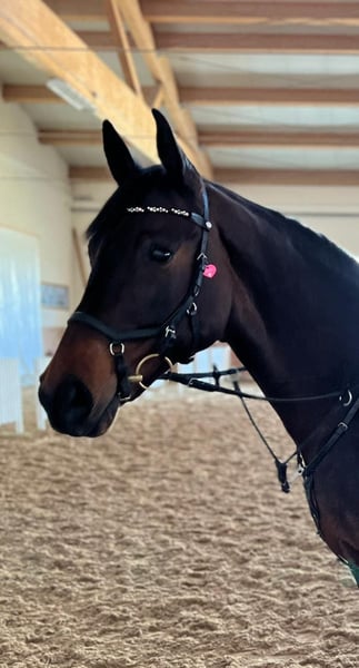 Beautiful Black-Brown Mare Seeking a Permanent Home with an Ambitious Recreational Rider With a heavy heart, I have to give up my Feliz, an Austrian warmblood mare. Due to the birth of our second son, I am no longer able to give her the attention she deserves. Feliz is a stunning 15-year-old, 1.61 m tall mare with a beautiful black-brown coat. She is only in her second owner’s hands and has been well cared for. She is a reliable and talented show jumper, enjoys hacking out, and her lively movement makes her very comfortable in dressage work. However, she requires a strong rider, as she tends to test boundaries at the beginning. Once she has gained trust, she will go through thick and thin for her rider. Feli has a condition in her hind leg that is being treated with regular physiotherapy. Further details are available by phone. Currently, she is in a paddock with free turnout, which I would like to see continue. She is dewormed, shod with shoes on both front and hind legs, and her teeth are regularly checked. I am looking for a wonderful permanent home for my Feli, where she will be valued just as much as with us. Price is secondary to finding the right place. This is not a desperate sale! To prevent horse tourism and to protect my Feli, I charge a fee of €20 for trial riding, which will be refunded upon purchase. I would also appreciate a video beforehand to assess your riding skills. Further information, photos, and videos are available only via the provided phone number: +49 170 8013738.