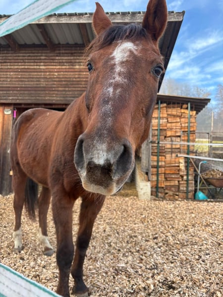Österreichische Warmblut Stute Dunkelfuchs Queeny sucht ihren Menschen - jemand der Erfahrung mitbringt Meine Tochter 14 und Queeny finden nach 1,5 Jahren Arbeit nicht perfekt zusammen. Wir wünschen uns für sie einen routinierten Pferdemenschen. Sie will gefallen und täglich gearbeitet werden- da wir leider keinen Reitplatz haben - können wir ihr dies nicht bieten. Sie ist eingetragene Zuchtstute - hatte bis jetzt ein Fohlen - auf Grund ihrer tollen Dressur Abstammung auch für die Zucht interessant. Bei ernsthaftem Interesse gerne mehr!