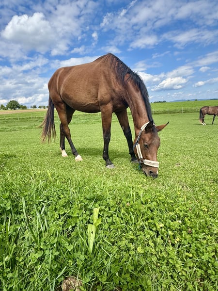 Entzückende Maus zu vergeben in gute Hände da ich umschwänken möchte auf PoloPferde. Sie ist in einer Aufzucht wo sie voll und ganz ihre Zeit genießen kann und mehr oder weniger unberührt ist . Sie kennt aber Schmid , gobt die Beine brav, lässt sich führen , anbinden , putzen und ist super entspannt vom Gemüt . Eine ganz süße Maus . Schlägt nicht , beißt nicht öegt die ohre nicht zurück und lässt alles soweit mit sich machen ohne Drama . Sie hat eine Überbiss der sie soweit nocht wirklich einschränkt . Nur regelmäßig Zähne abschleifen wäre wichtig , aus Heunetz fressen könnte schwieriger für sie sein und ganz ganz kurze Gras . Sonst ist sie ein ganz normales Pferd .