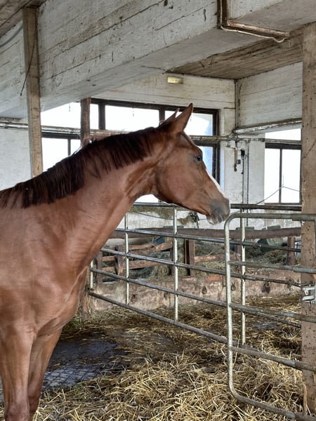 Ich verkaufe meine 2,5 jährige Warmblutstute. Perfekt für jemanden, der sich ein Pferd selber ausbilden möchte. Da sie jetzt seit einigen Tagen aufgestallt ist, kann ich demnächst auch einmal ein Video machen. Habe bereits angefangen sie ein bisschen zu longieren. Sie ist sehr Menschen bezogen, lässt sich problemlos verladen, ist artig beim Hufschmied, lässt sich bereits anbinden und waschen und ist generell super unkompliziert und gelehrig. Ich verkaufe sie nur, da ich einfach zu wenig Zeit habe und ihr nicht gerecht werden kann. Platz vor Preis! Bitte keine Händleranfragen.