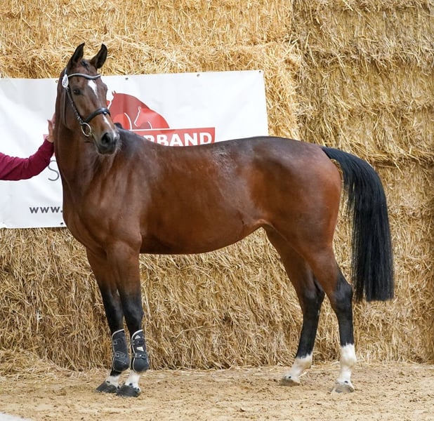 Beautiful, well-behaved horse with an excellent temperament. Directly from the breeder. Already very well-trained under saddle, free-jumping with great technique and awareness. Currently in training and available for viewing. Knows almost everything a three-year-old horse should know. Only to be placed in the most caring and supportive hands.