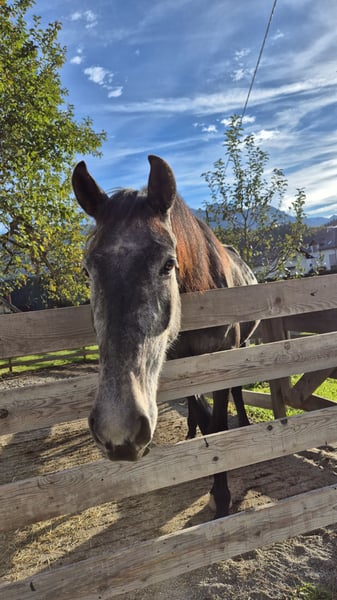 Verkaufe meine liebe Österreichische Warmblut Stute Freya (Diamant). Sie wird sicher noch ein wenig ausschimmeln. Die Maus ist knapp 4 Jahre alt, verbrachte ihre Lebenszeit in einer Herde auf Alm & Wiesen. Sie ist zurzeit +/- 1,67m groß & hat einen total lieben Charakter. Da ich einen Unfall hatte, konnte ich sie leider nicht weiters trainieren. Daher ist sie noch nicht angeritten, kennt aber schon den Gurt. Freya ist wirklich eine brave, umgängliche Stute, rangniedrig & sehr neugierig. Braucht dennoch eine ruhige Hand, die ihr die Welt zeigt & ihr Zeit gibt. Sie ist meist schnell zu überzeugen & macht fleißig mit. Sie ist kein Notverkauf & wird nur in allerbeste Hände übergeben! Nach einen persönlichen Kennenlernen von Pferd & Mensch können wir gerne weiteres Bespreche. Pferdeanhänger für den Transport vorhanden Gerne eine WhatsApp/ Nachricht an 0650/5131579