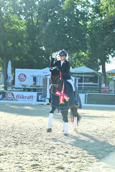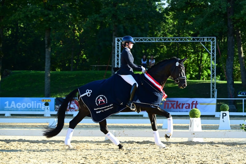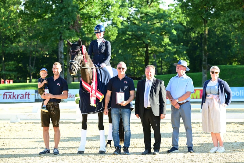 Unsere Arizona bescherte uns am 24.05.2021 das 5. Stutfohlen hintereinander. Die Kleine stammt von Marc Cain x Desperados x Ron William ab. Das Stutfohlen besticht wieder mit Typ, Interieur und Bewegungsqualität. Dies konnte sie beim Fohlenchampionat am 29. August in Ebbs beweisen – Atlanta sicherte sich mit einer Wertnote von 8,68 (9,0/8,5/8,5) den tollen 3. Platz und wird Tirol beim Bundeschampionat bestens vertreten. In Sighartstein/ Salzburg gewinnt die 3 jährige Tochter Atlanta nach Marc Cain die Reitpferdeprüfung im Rahmen der Westösterreichischen Warmbluttage mit 8,5. Beim AWÖ Bundeschampionat 2024 belegte Atlanta bei den 3 jährigen Reitpferde nach Rang 2 im Grundbewerb den 3. Platz im Finale mit 8,2. Hier gilt auch der Dank sowie Gratulation an die Ausbildnerin Kerstin Kronaus. Im Turnierjahr 2025 ist Atlanta und Kerstin nach drei DPA Starts noch ungeschlagen. Beim Reitpferdechampionat von Tirol und Salzburg siegte sie bei den 4-jährigen mit 8,5. Am Finaltag am AWÖ Bundeschampionat unterrich unsere 4 jährige Stute Atlanta (Marc Cain x Desperados) nach dem Sieg im Grundbewerb ihre Qualität unter Ausbildnerin Kerstin Kronaus mit der Endnote 8,75 (Fremdreiter 10,0) und sicherte sich den Bundeschampionatstitel der 4 jährigen Reitpferde.