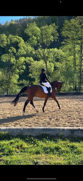 Beautiful, well-behaved mare with competition experience seeks new home For sale is a loving and extremely well-behaved 5-year-old mare with a height of approximately 1.72 m. I have owned her since she was three years old and have trained her myself with a lot of time, patience, and love. She is a real treasure in daily handling – absolutely uncomplicated, people-oriented, and friendly. Even under saddle, she consistently shows reliability, willingness to perform, and no vices, making her well-suited for less experienced riders. She has already been successfully presented in eventing. It is particularly important to me to find a loving and supportive home for her. If you are seriously interested, I look forward to a message and am happy to answer any further questions.