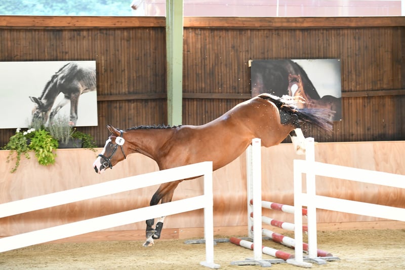 Mare, born in 2019 – Comte x Cavalier x Mister ▪️ Styrian Reserve Champion filly (show jumping focus) ▪️ Styrian Reserve Champion mare with a jumping emphasis – free jumping score of 9.0 at age 4 ▪️ Foal of "Caytens" in 2023 Fini is a striking mare with a distinctive coat color and a big heart: motivated, honest, and eager to work—whether in the arena or out on the trails. Her pedigree speaks for itself: Comte’s offspring are athletic, rideable, and performance-oriented. Cavalier (San Patrignano Mister) was an international star in show jumping. Silbersee has sired numerous Grand Prix winners. Due to mild summer eczema, she is offered at a significantly reduced price. Further details are available upon request.