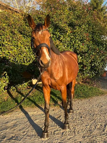 Vende una femmina di 6 anni con un pedigree eccezionale nel salto, un vero diamante grezzo da rifinire secondo i propri gusti. È stata messa in sella a circa 4 anni, dopo aver avuto un puledro. A 5 anni ha partecipato a due gare, ma poi non è stata più allenata per motivi di tempo. Recentemente è stata affidata a un allenatore professionista e ha già partecipato a una gara, mostrando ottime prestazioni. È motivata e coraggiosa in salto, ma a causa del suo livello di formazione, necessita di un cavaliere con esperienza e mano tranquilla. Le lastre di radiografie, risalenti a gennaio 2024, sono disponibili e risultano senza particolari anomalie. Su richiesta, a spese dell’acquirente, può essere effettuato un controllo veterinario completo. Attualmente indossa solo ferri anteriori, conosce la scuderia, il box e il pascolo quotidiano, e vive in paddock. Il test di monta è ovviamente possibile, tuttavia chiediamo una cauzione di 30 euro per evitare il turismo equestre; questa cifra sarà rimborsata in caso di acquisto.