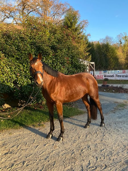 Verkauft wird eine 6-jährige Stute mit Top-Springabstammung - ein kleiner Rohdiamant zum selber schleifen. Ende 4-jährig angeritten, da sie zuvor ein Fohlen hatte. 5-jährig lief sie 2 Turniere und wurde dann aus Zeitgründen nicht weiter gefördert. Nun ist sie in Profi-Beritt und war bereits wieder am Turnier, wobei sie von keinem Turnier ohne Nullrunde heimfuhr. Bisher wurde sie bis 1,10m gestartet und wird jetzt langsam an höhere Sprünge herangeführt. Sie ist am Sprung motiviert und mutig, braucht aber aufgrund des Ausbildungsstandes einen Reiter mit etwas Erfahrung und einer ruhigen Hand. Röntgen aus 01/2024 sind vorhanden und waren unauffällig, gerne kann auf Kosten des Käufers eine AKU vorgenommen werden. Sie ist aktuell nur vorne beschlagen, kennt Box mit täglichem Weidegang und Offenstallhaltung. Probereiten ist selbstverständlich möglich, allerdings verlangen wir dafür 30,-€, um Reittourismus vorzubeugen, diesen Betrag ziehen wir bei Kauf gerne wieder ab.
