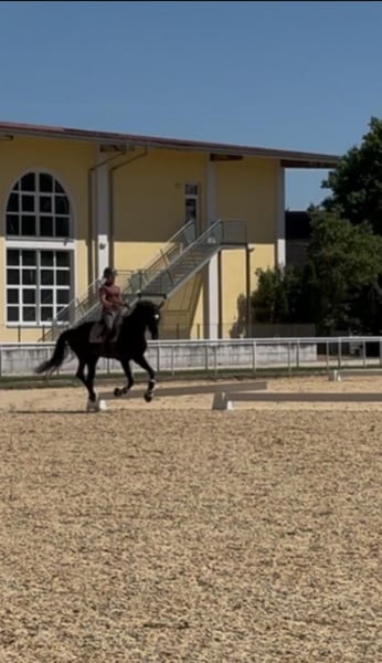 Cesaria is an Austrian Warmblood mare foaled in August 2018, sired by Zonik out of Raven x Akzent II. This beautiful black mare with a white star stands out especially for her excellent basic gaits. Cesaria proves to be reliable and easy to handle during off-site training. She successfully completed her first competition (2nd place). The mare is consistently in professional training at a reputable training stable and is suitable for both competitive riding and advanced leisure riding. Cesaria is confident in handling, as well as shoeing- and loading-safe. Due to her exceptional pedigree (Zonik), she is also very interesting for breeding. For more information, please feel free to contact me by phone at +43 664 1677555.