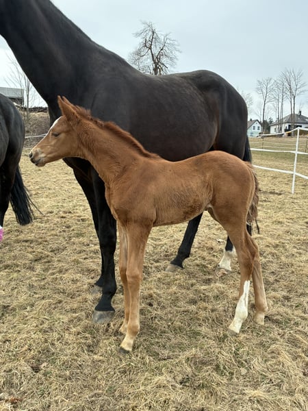 Joanna´s Love Story, Stamm der Galupka (Love Story Stamm) Zum Verkauf steht ein elegantes, langbeiniges und vielversprechendes AWÖ Stutfohlen, geboren Anfang März 2026. Sie beeindruckt nicht nur durch ihr modernes Äußeres und korrektem Fundament, sondern auch durch ihr großes Potenzial im Dressursport. Sie präsentiert sich mit viel Ausdruck und überragenden Grundgangarten mit viel Antritt, der Motor sitzt wo er hingehört. Sie ist bestens für ambitionierte Reiter geeignet, die eine talentierte Nachwuchsstute suchen. Diese junge Dame zeigt bereits überdurchschnittliche Bewegungen und hat das Potenzial für den großen Sport. Schon seit ihrer Geburt ist sie total zutraulich und neugierig. Auch die Mutter Jolanda ist eine total zugewandte, verschmuste und menschenbezogene Stute. Geschätztes Endmaß +- 1,71m Bei der Abgabe im Herbst 2026 kennt sie das Fohlen ABC, stand schon mehrmals am Hänger, kennt große Maschinen, Kinder, Rinder, Hunde usw. Unsere Pferde kennen verschiedene Haltungsformen und die Fohlen wachsen artgerecht in der Gruppe mit Gleichaltrigen auf. Wir freuen uns darauf, diesen besonderen Nachwuchs aus unserer privaten kleinen Eigenzucht persönlich vorzustellen. Aus dem ersten Fohlenjahrgang des Hengstes Zauberer (Prämienhengst). Er verzaubert mit unvergleichlicher Ausstrahlung. Ein kompakter, sportlicher und wunderschön aufgemachter Junghengst (2022) mit nahezu idealem Exterieur, bestem Tüv und korrektem, stabilem Fundament. Bei seinen Auftritten beeindruckt er mit Eleganz, Leichtfüßigkeit und Bewegungsstärke, dies bei Gelassenheit und stets kraftvoll abfussend. Hervorzuheben ist sein raumgreifender Schritt. Auch unter dem Sattel kann er seine Stärken immer mehr umsetzen. An der Körung kommentierte Körkomissarin Heike Kemmer: „Mit diesem tollen Interieur wird er es seinem Reiter einmal leicht machen“.Der Vater Zauberlehrling PS, trägt das Erbe des hocherfolgreichen Grand Prix Pferdes Glock´s Zonik, der als Weltcupfinalist, Teilnehmer der Weltreiterspiele in Tyron, sowie den Europameisterschaften zudem 17 gekörte Söhne stellte. In 3. Generation folgt das Blut des Olympiahengstes Blue Hors Zack, welcher mit 42 gekörten Söhnen und 37 Grand Prix erfolgreichen Nachkommen an 5. Stelle des WBFSH Rankings steht. Die Mutter von Franz Ferdinand, Woodlander Dornröschen, war erfolgreich im internationalen Grand Prix Sport unterwegs. Zuchterfolgreich und sportlich abgesichert ist der Stutenstamm der Nikaza: Gekörte Hengste wie der Prämienhengst Friedrich der Große von For Romance II, Deparon von Deveraux und Val Rouge von Valverde entstammen dieser Mutterlinie. Erfolgreiche Grand Prix Pferde aus dem Stamm sind Hot Date von Hotlin, Farrell von Fabregas und Golden Choice DC von Grand Cru.Der viel zu früh verstorbene (Muttervater) Prämienhengst Jovian weißt Debütsiege in der Grand Prix-Klasse und Ergebnissen von über 80 Prozent vor. Ein paar seiner Erfolge:Er gewann 2023 mit Andreas Helgstrand EM-Teamgold, war Zweifacher EM-Teambronzegewinner, erzielte den vierten Platz in der Weltcup-Kür in Vilhelmsborg. 2018 gewann er mit 9,01 seinen Sporttest in Verden. Als Weltmeister der 5-Jährigen ausgezeichnet (mit vier von fünf möglichen 10er-Wertungen) und als Weltmeister der 7-Jährigen mit 95,2% Der viel zu früh verstorbene Vater Apache wurde 2015 in den niederländischen Olympia- Kader berufen. 2018 gehörte er bei den Weltreiterspielen zu der an fünfter Stelle platzierten niederländischen Equipe. Im Jahr darauf wurde er Achter im Weltcup-Finale. Danone I - Der Siegerhengst der schwedischen Körung 2003 ist ein kapitaler Bewegungskönig. Bildschön, mit optimal bergauf formierter Halsung, ideal in der Oberlinie, langbeinig und korrekt im Fundament. Er selbst konnte Platzierungen bis Int. FEI GP4* vorweisen. Aus dem hochbewährten Love Story Stamm kommen Siegerstuten, gekörte Hengste und Grand Prix Pferde u.a. die gekörten und in S-Dressuren erfolgreichen Sir Diamond OLD sowie Fürst Wilhelm. Weitere Hengste wären Rubin Extra (v. Rubinstein), Jazzmate (v. Jazz), Decamerone (v. Diamond Hit), Fürst Love (v. Fürst Heinrich), Franklin's Love PS (v. Franklin), Blue Hors Zee Me Blue (v. Zack) uvm.