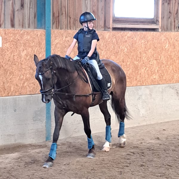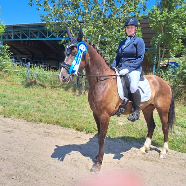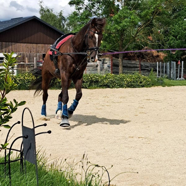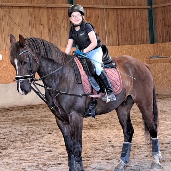 Beautiful gelding with a special coat color in Kohlfuchs, very elegant movement, easy to ride. He impresses with his calm and relaxed nature, always eager to please, very eager to learn, child-friendly, and loves cuddling during grooming and tacking up. He has successfully competed in his first competitions this year and is a wonderful horse. Unfortunately, we have to part with him because, due to a sudden COPD diagnosis, he can no longer stay in box stall housing. He requires pasture turnout and free movement at all times, which is why he is being sold well below his actual value. He is looking for a loving family.