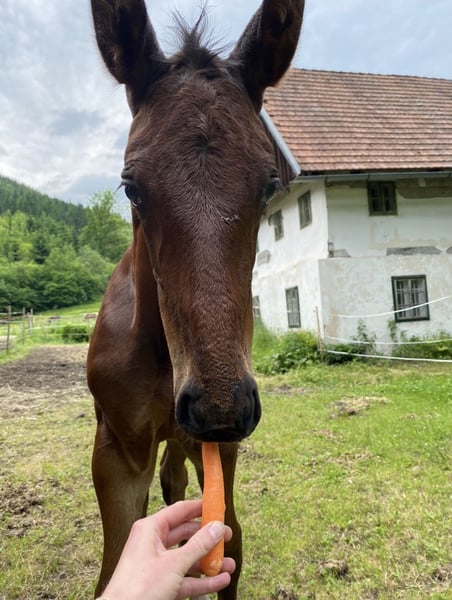 Fair Play – my first foal I raised myself, making him a very special horse for me. From the very first second, I felt I knew this horse. Fair Play is exceptionally well-behaved and uncomplicated for his age, both in handling and under saddle. His primary discipline is clearly dressage. However, he is also familiar with small hacks and small jumps, which he always approaches very calmly. He is excellent when leading, loading, on the turnout, grooming, and tacking up. As a foal, he competed at the championship in Oisnitz and was later invited to the championship in Stadl-Paura. He was backed last year and is now being trained in the three basic gaits. Due to his size and age, he is familiar with lateral work, rein-back, leg-yields, transitions, and extensions. He hasn't needed to do more than that with me so far. He knows lunging and ground work and performs them willingly. Thanks to his size, he is very suitable for tall women or men alike. He is very easy to ride and can be ridden with just two fingers. I am looking for someone who is seeking a young, special horse and enjoys a thorough training process and a lifelong partner. Because that is exactly what Fair Play is. Further information available upon request.
