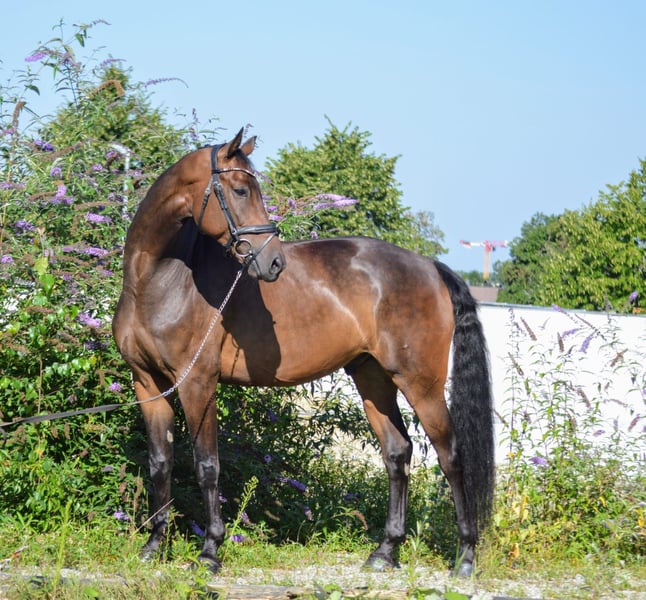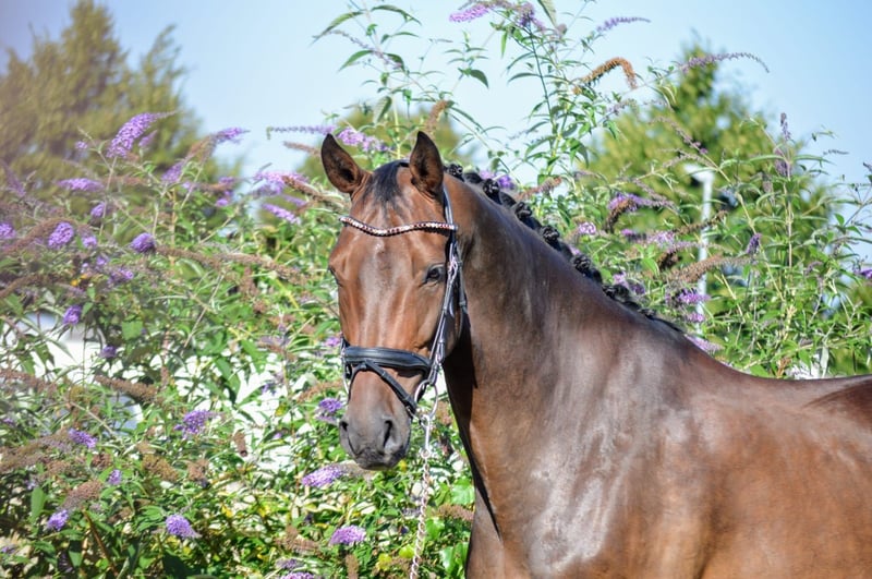 Vito is a 7-year-old gelding with an excellent temperament. Whether in the terrain, over small jumps, in handling, or during dressage training... Vito consistently shows his best qualities. He is successfully competing up to M* level (LP) and learns easily and quickly. Occasional tongue-lolling does not hinder his performance. An ideal horse for juniors, leisure riders, or amateurs.