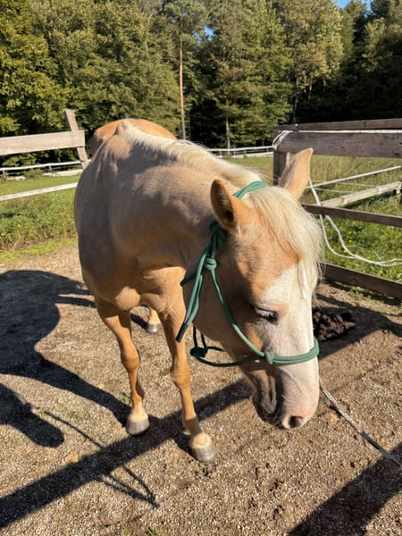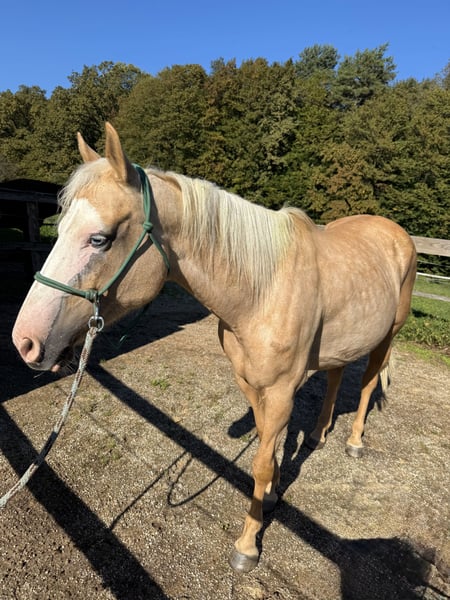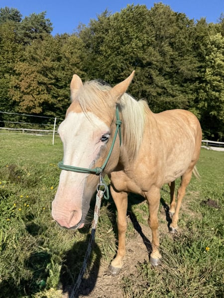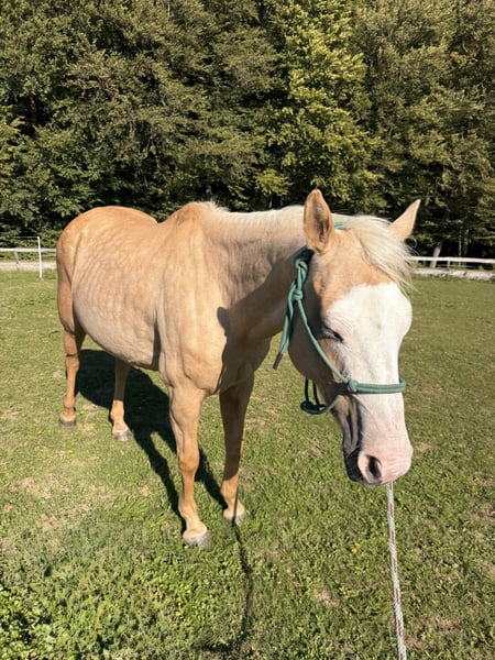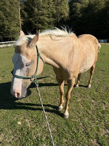 Offered for sale is a 2015 Paint mare (unregistered), standing approximately 150 cm tall, with a striking bald white face and one blue eye. Her calm and gentle nature makes her an excellent partner for children, beginners, and riders of all experience levels. She has been ridden both on trails and in the arena by novice and experienced riders, including children, and has proven to be safe, dependable, and easy to handle. • Ridden bitless (side pull) • Accustomed to both English and Western tack • Traffic-safe, confident on trails • Loads easily into a trailer • Stands well for the farrier • Never shod, has strong and healthy hooves • Located in Slovenia • Photos and videos available on request Price 4.800€ Zu verkaufen: Verlässliche, sanftmütige Paint-Stute mit Fohlen – ideal für Anfänger & Familien Zum Verkauf steht eine Paint mix Stute, Jahrgang 2015, ca. 150 cm groß, mit markanter weißer Blesse und einem blauen Auge. Aufgrund ihres besonders ruhigen und ausgeglichenen Charakters ist sie hervorragend geeignet für Kinder, Anfänger und Reiter aller Erfahrungsstufen. Sie wurde sowohl im Gelände als auch in der Reitbahn geritten – von Kindern und Erwachsenen, mit und ohne Reiterfahrung – stets brav und zuverlässig. • Wird gebisslos geritten (Side Pull) • Gewöhnt an englischen und Western-Sattel • Verkehrssicher und geländeerprobt • Problemlos verladefromm • Brav beim Hufschmied • Nie beschlagen, sehr starke, gesunde Hufe Sie ist außerdem eine liebevolle, erfahrene Mutterstute und hat bereits mehrfach kräftige, gut gebaute Fohlen gebracht. • Standort: Slowenien • Fotos und Videos gerne auf Anfrage Preis: 4.800€ Kontakt bitte über WhatsApp.
