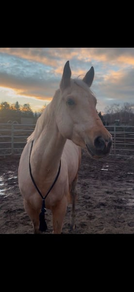 Met pijn in het hart heb ik besloten mijn geliefde paardje een nieuw thuis te geven. Trus Painted Akira, liefdevol Akira genoemd, is geboren op 12-04-2022 en is daarmee een 3,5-jarige, volledig geregistreerde Paint Horse merrie. Ze is een Palomino Tobiano met een uitstekende afstamming (zie afbeelding 11-14). Op afbeeldingen 8 en 9 zie je haar als veulentje en haar moeder, afbeelding 10 toont haar vader. Later zal ze ook interessant kunnen zijn voor de fokkerij. Ze is momenteel ongeveer 1,50/1,55 m hoog, maar ik denk dat er nog wat groei in zit. Ze staat nu in een box met dagelijkse weidegang in een gemengde kudde, maar ze kent ook 24/7 weidegang, hoewel ze daar niet helemaal tevreden mee was. Ze is super lief en als ze eenmaal vertrouwen heeft, kan je met haar door het vuur gaan. In het begin is ze bij nieuwe mensen wat onzeker, maar dat trekt snel weg. Het is erg moeilijk voor mij om deze beslissing te nemen, omdat ik haar sinds haar geboorte ken, maar deze keuze wordt gemaakt voor haar welzijn, niet voor mij. Ik heb besloten haar in liefdevolle handen te geven, omdat ik haar niet meer de aandacht en begeleiding kan geven die ze verdient en nodig heeft. Ik heb niet de juiste ervaring om haar op te leiden en te stimuleren zoals ze dat verdient. Ze wordt momenteel onder het zadel gereden (met een instructrice) en kent stap, draf en de basis van galop onder het zadel. We zijn voorzichtig begonnen, dus ze loopt nog niet perfect, maar ze doet altijd haar best, is braaf en leergierig. In omgang is ze heel lief en onbevreesd. Ze kent tractoren, honden, kinderen, auto’s en is daarbij ook niet bang. Ze is ook gewend om buitenritten te maken vanaf de grond en blijft daarbij altijd rustig. We hebben al eens samen een buitenrit gemaakt, wat ze heel goed heeft gedaan. Ze vindt grondwerk heel leuk en kan zelfs een paar trucjes (zoals cirkelen, Spaanse pas, glimlachje en dergelijke). Ze doet echt alles met plezier en staat open voor plezier en nieuwe dingen. Longeren met en zonder bit is ook geen probleem. Vanwege haar leeftijd is ze geen beginnerspaard en heeft ze een ervaren, liefdevolle persoon nodig die de tijd voor haar kan nemen. Proefritten zijn vanwege haar opleidingsniveau niet mogelijk (wel heb ik video's van haar onder het zadel, die ik op verzoek kan sturen). Ze is vier keer beslagen, omdat ze momenteel niet zonder hoefbeslag kan lopen. Haar tanden zijn recent gecontroleerd en verzorgd, en ze is ook bij de chiropractor geweest. Ze wordt regelmatig ontwormd en is gevaccineerd. Een passende zadel en accessoires kunnen tegen meerprijs worden overgenomen. (De zadel is recent aangepast.) Ik wens haar een mooi nieuw thuis toe waar ze gestimuleerd en geliefd wordt! Plaats gaat voor prijs! (Geen handelaren!) Wil je Akira leren kennen? We kijken uit naar je bezoek! Je kunt contact met mij opnemen via 015172412135 of hier, telefonisch of via WhatsApp.