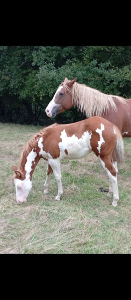 Fohlen geboren am 19. Mai 2025 zur Reservierung, APHA- und französische Papiere. Sehr freundlich und anhänglich. Vater DG Hollywood Top Gun und Mutter EF Frosty Otoe. Panel 5 n/n durch Abstammung ee, Aa, sw1/sw2, nd1/nd2 Für weitere Informationen zögern Sie nicht, mich zu kontaktieren.
