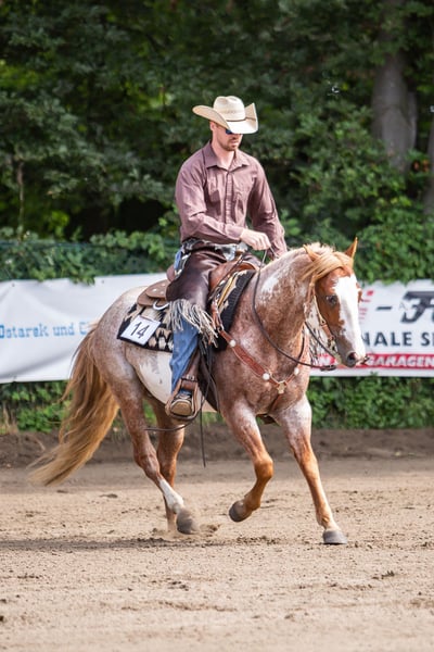 Smart Shining Jetta aka Smarty ist ein 11 jähriger Paint Wallach. Aus Zeitmangel wird er verkauft. Smarty zeigt sich stets motiviert. Deshalb wünschen wir uns für ihn ein neues Zuhause in dem er mehr beschäftigt wird. Smarty steht bei uns in einem Offenstall. Er kennt aber auch morgens raus/abends in die Box. Er wird nicht in eine mehr oder weniger reine Boxenhaltung verkauft. Smarty hat eine Allround Abstammung und kennt die Reining Manöver (bis auf den fliegenden Wechsel). Er lief 4 und 5 jährig EWU Turniere in der LK 1 und konnte neben mehreren Platzierungen eine EWU Pferdemedaille Bronze in der Ranch Riding für sich gewinnen . In den letzten Jahren ist er vereinzelt kleinere EWU Turniere gelaufen und konnte auch dort Schleifen für sich gewinnen. Smarty will immer gefallen und hat deshalb ab und zu mehr Go (aber immer lieb dabei). Deshalb ist er nicht unbedingt ein reines Anfängerpferd. Er kann auch von Kindern mitgeritten werden. Smarty ist für jeden Spaß zu haben. Ob Ausritte alleine oder mit 30 weiteren Pferden ist kein Problem. Er kann ohne Probleme alleine verladen werden und ist auch in allen weiteren Bereichen eine treue Seele. Er hatte als zweijähriger eine Periodische Augenentzündung und wurde daran operiert. Auf dem linken Auge hat er Seheinschränkungen, die ihn aber weder in der Haltung noch im Umgang in irgendeiner Form einschränken. Deshalb wird er unter seinem Wert verkauft. Bei Interesse kann ich auch gerne ein Video schicken. Um den Reittourissmus entgegen zu wirken nehmen wir 30€ für das Probereiten. Diese werden beim Kauf selbstverständlich vom Kaufpreis abgezogen
