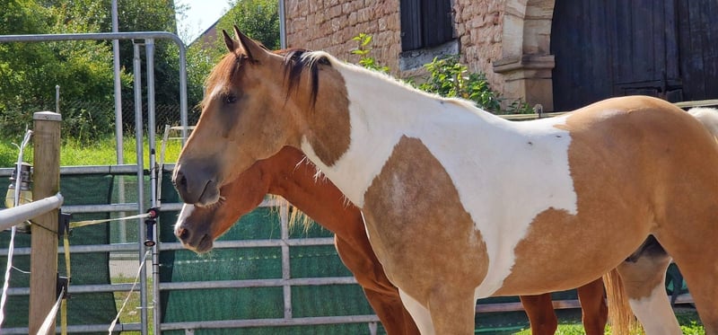 Ich habe mich schweren Herzens dazu entschlossen meine Paint Wallach in liebevolle Hände abzugeben! Leider fehlt mir absolut die Zeit für ihn! Er ist super anhänglich und wird ein Partner fürs Leben! Ich habe ihn selbst angeritten aber dafür auch sehr wenig und meist nur ins Gelände! Er kann deshalb nicht wirklich viel! Ein Probereiten geschaltet sich etwas schwierig, aber wird versucht möglich zu machen(es fehlt der Sattel)! Er ist ein absoluter Schatz, was die Integration in eine Herde betrifft! Ein Boxenpferd ist er nicht, ich wünsche mir für ihn weitestgehend Koppelauslauf, da er das von klein auf so gewohnt ist. Hat man sein vertrauen ist er ein absoluter Teamplayer!! Bisher ist er noch nicht Anfänger geeignet, da er nicht viel kann und er noch nicht gefestigt ist in der Arbeit. Sollte aber bei regelmäßiger arbeit mit ihm absolut kein Problem sein! Ankaufsuntersuchung ist absolut kein Problem, bei eigenständigem übernehmen der kosten! Es lohnt sich ihn kennen zu lernen!