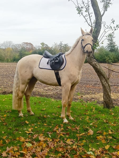Te koop jonge Palomino merrie Wij bieden een prachtige Palomino merrie, geboren in 2022, te koop aan. Met een stokmaat van ongeveer 1,60 m combineert ze elegantie en kracht. Ze is veelzijdig inzetbaar. De merrie is gezond, goed opgevoed en heeft een vriendelijk karakter. Perfect voor ambitieuze ruiters die op zoek zijn naar een jong paard met veel potentieel. Primabella is nog niet bereden, maar al wel aangelegd met zadel en bit. Vader: Krem-Robin Hood uit Nederland. Moeder: Gordon SchW. Bij interesse of voor meer informatie horen wij graag van u!