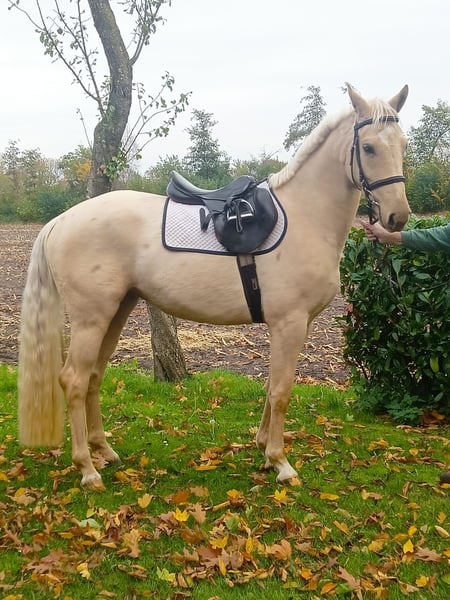 Verkaufe junge Palomino-Stute Wir bieten eine wunderschöne Palomino-Stute, geboren im Jahr 2022, zum Verkauf an. Mit einem Stockmaß von ca. 160 cm vereint sie Eleganz und Kraft. Sie ist vielseitig einsetzbar. Die Stute ist gesund, gut erzogen und hat ein freundliches Wesen. Perfekt für ambitionierte Reiter, die ein junges Pferd mit viel Potenzial suchen. Primabella ist noch nicht geritten aber bereits anlongiert mit Sattel und Trense. Vater:Krem-Robin Hood aus dem Niederlande. Mutter:Gordon SchW. Bei Interesse oder für weitere Informationen freuen wir uns auf Ihre Kontaktaufnahme!