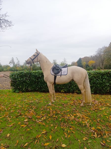Young Palomino Mare for Sale We are offering a beautiful Palomino mare, born in 2022, for sale. Standing approximately 16.1 hh, she combines elegance and strength. She is versatile and suitable for various disciplines. The mare is healthy, well-trained, and has a friendly temperament. Perfect for ambitious riders looking for a young horse with great potential. Primabella has not yet been ridden but has already been lunged with saddle and bridle. Sire: Krem-Robin Hood from the Netherlands Dam: Gordon SchW If you are interested or would like more information, we look forward to hearing from you!