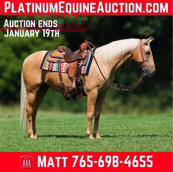 ONLINE AUCTION Place your bids at www.PlatinumEquineAuction.com Starting Bid $3500 Auction ends January 19th, 2025 Need a new saddle? Check out White Rock Saddles on our website or Facebook! A Zans Olen Jack is a stout built Golden Palomino Gelding. He is standing 15.1hh and he is a 2017 Model Registered AQHA Gelding. He is well bred going back to Zan Parr Bar and is a rare find with Two Eyed Jack still listed on his pedigree. Zan is a do it all kind of horse! He can go out and hit the trails and just cruise along slow and easy. He rides with his head low and will keep a loose/draped rein. He has been exposed to all kinds of wildlife. He will go up or down steep slopes, across deep creeks, over downed trees, and over all types of rough terrain while still being sure footed. He has been ridden through town and is safe in traffic is not spooky. He has been started on the roping dummy and is doing a good job tracking it. He knows his way around the ranch and has plenty of cow sense. We have taken him on several cow catching jobs and roped cows and big bulls on him. He will work the rope while you tie one down and knows how to help you get the job done. He has a smooth jog, a VERY VERY nice easy to set lope, a good stop, turns a circle both ways and backs with ease! Zan is an excellent horse for anything from trail to ranch work and is pleasure to be around! We are located in Brodhead, KY. Feel free to call Lucky 13 Equine Matt 765-698-4655 or Lysandra 765-717-2041 with any questions or to make a buy it now offer. Thanks!ONLINE AUCTION Place your bids at www.PlatinumEquineAuction.com Starting Bid $3500 Auction ends January 19th, 2025 Need a new saddle? Check out White Rock Saddles on our website or Facebook!