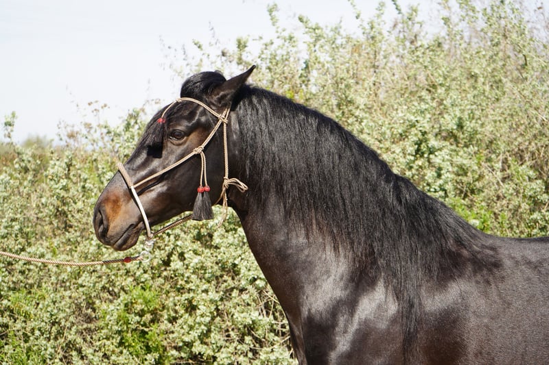 Exceptional Paso Iberoamericano stallion, born in 2021, standing at a well-balanced height of 15.2 hands. This striking black stallion has elegance and smooth gaits making him an ideal choice for riders seeking a versatile and reliable trail partner. With his calm demeanor and well-ridden temperament, he's learning to navigate a variety of trail environments. His natural gait and balanced conformation ensure a pleasant experience for both rider and horse, whether on leisurely hacks or more demanding trail adventures. This young stallion shows great potential for further training and development, making him an excellent prospect for riders looking to bring out his full potential. His striking black coat and refined appearance make him a true eye-catcher in any setting. A fantastic opportunity for those seeking a beautiful horse with a friendly disposition and trail-ready attitude. Don’t miss the chance to add this promising young horse to your stable! Option to geld.