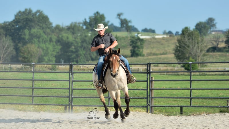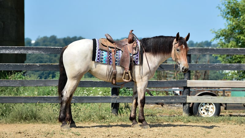 🍁𝒕𝒉𝒆 𝐅𝐀𝐋𝐋 𝑺𝒑𝒆𝒄𝒕𝒂𝒄𝒖𝒍𝒂𝒓🍁 Happening now thru MONDAY | SEPTEMBER 22nd - Available EXCLUSIVELY on HorseBid's website! For more details and to register visit: www.Horsebid.com CONSIGNOR CONTACT: Weaver Equine 330-641-6105 LOCATION: Fredericksburg, OH BREED: Percheron/ Quarter Horse REGISTERED: No COLOR: Bay roan HEIGHT: 15.3 AGE: 4 GENDER: Mare Introducing Izzy! Izzy is a 4-year-old Percheron quarter horse cross Mare that is very well broke to ride. She is 15.3 hands high and a beautiful bay roan color. Izzy is an amazing ride whether it's in the arena, out on trails, in groups, or out in traffic. She will lope a circle nicely. Has a beautiful walk, trot, Canter transition. She will go anywhere you point her. She will stand to mount. And stand nicely at a mounting block as well. She will cross most obstacles easily. She does not mind the tarp, flag ECT. She will pick up both leads correctly. She can and will take a few jumps. Super quiet minded mare. We have had her out on local trails, Where she has always been super great! She will cross creeks and step over logs with ease. She does not mind mud puddles. She rides well out alone or with a group. We have ponied other horses off of her. She takes the hills with ease. She does not mind being out in heavy traffic. We have had her on local trail rides and parades as well. She does not mind a big crowd, and will ride as well in a ruckus as she does at home. Izzy will qualify as Begginer friendly! She is also a doll in the barn. She leads nicely. She will stand nicely tied on her lead line and on the cross ties. She will stand to be groomed and tacked. She stands well for the farrier as well. She will pick up all four feet nicely. She is easy to catch in the stall. She is fine when turned out with a group of horses, and will be the first one to greet you in the pasture. No maintenance. 100% sound. Izzy has that super sweet loving attitude that we all love to have in our barn! She loves attention, treats and we'll do anything to please you. I really can't say a bad word about her! Definitely a family horse. One fits all! Don't miss this pretty girl! Available now!