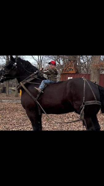 ONLINE AUCTION Place your bids at www.PlatinumEquineAuction.com Starting Bid $3500 Auction ends July 14th, 2024 Need a new saddle? Check out White Rock Saddles on our website or Facebook! Levi is a 14 yr old, big (18 hands), black, beautiful, registered Percheron gelding. The proverbial gentle giant although his ancestors were bred to be French War Horses caring knights into battle! I have 6 videos show it all; easy to catch, loves attention, comes when called, easy to bath, easy to clip, easy to saddle, easy to mount, stands for mounting, stands for shoeing, no stocks needed, beautiful mover that gets his leads, more whoa than go, rides and drives, great babysitter to the yearlings, not spooky, rope, whip, tarp, slicker, children riding and more, just request a link to them. My granddaughter took her first riding lesson on him…what a fun family horse! Up to date on everything. I’m a big guy and I bought him to haul all over the country on trail rides but life and medical issues got in the way… My loss is your gain! He is fun to lope around and he will get you a lot of attention everywhere you go! Send me a message to get all videos, you don’t want to miss this one. Contact KR Smith 832-973-3084 with any questions. Located in Montgomery, TX. ONLINE AUCTION Place your bids at www.PlatinumEquineAuction.com Starting Bid $3500 Auction ends July 14th, 2024 Need a new saddle? Check out White Rock Saddles on our website or Facebook!