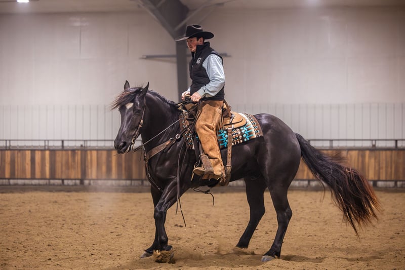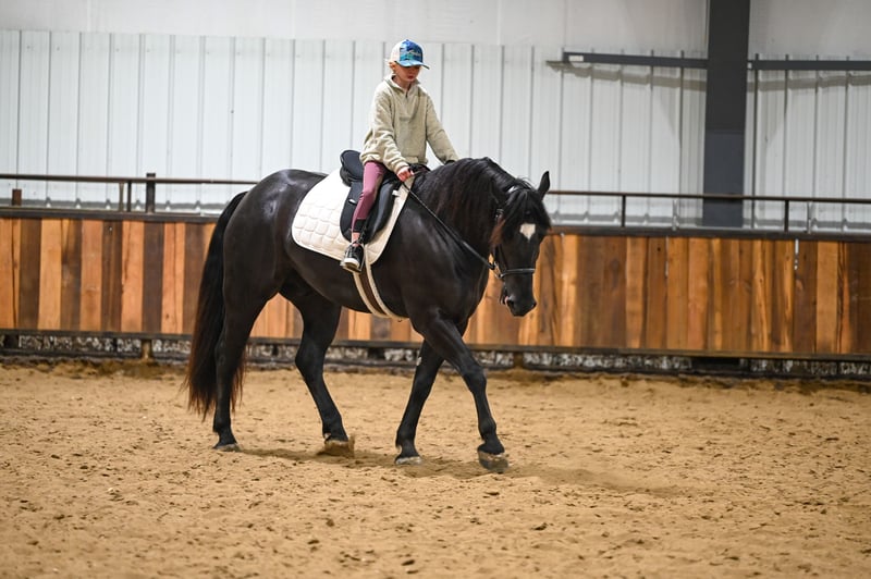 𝑳𝒚𝒏𝒄𝒉 𝐏𝐄𝐑𝐅𝐎𝐑𝐌𝐀𝐍𝐂𝐄 🔹𝑼𝑵𝑰𝑪𝑶𝑹𝑵 𝐂𝐋𝐀𝐒𝐒𝐈𝐂🔹 Happening now thru SATURDAY | MARCH 28th - Available EXCLUSIVELY on HorseBid's website! For more details and to register visit: www.Horsebid.com CONSIGNOR CONTACT: Lynch Performance, LLC 605-212-8917 LOCATION: Canistota, SD BREED: Percheron/Quarter Horse REGISTERED: No COLOR: Black HEIGHT: 15.3 AGE: 4 GENDER: Gelding Home raised, beautiful, and kind-hearted wrapped up in a large 15.3hh coal black package. “Duke” is the most sweet natured horse around. He has the soft, kind eye and the aim to please mind. Duke has a striking jaw dropping presence. People that come to our place cannot help but stop and take a second (and third) look at him. This big boy has a massive tail that reaches the ground, a perfect star on his forehead, and impeccable conformation. Duke is a gelding that is far beyond his years and always has been that way. He has a very mature mind and has wanted to be broke from the very beginning. Duke has been Jared’s personal, main mount to help with the ranch chores. If we need to go catch some cows, Duke gets the call. If we need to sort through stock, Duke gets the call. If we need to halter break some colts, Duke gets the call. This guy is big and strong and knows how to use himself. The chaos that ranch chores can bring is of no concern for him. They do not come better minded. Duke (Dukester, Dukess) sure is handy on the ranch, but he will really catch ones’ attention in the arena. This boy is a beautiful mover! He rides soft in the bridle and stays level headed. He can get his rear end in the ground and can turn around pretty good for a big boy! Man oh man does he ride fancy in english tack! Duke will be soft and responsive in the bridle and his body. We are so trustworthy with this guy that we let our little sixty pound niece ride him. If a steady trail mount is your jam, Duke will be your guy. He will take care of his rider and he is smooth no matter the terrain. Duke will cross creeks mindful of his steps or go right into the big deep water. This gelding has no issue riding out alone or in a group. With him being a bigger guy, we did train him to side-pass to any obstacle to make mounting a breeze. This is a genuine good boy that we are so proud of. We have had him his whole life and have all the confidence that he will be one to put a smile on your face every day.