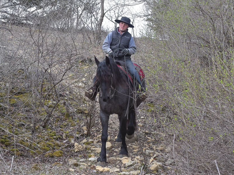 Online-Auktion Bieten Sie jetzt auf www.PlatinumEquineAuction.com Startgebot: 3.500 US-Dollar Auktion endet am 13. Juli 2025 Benötigen Sie einen neuen Sattel? Schauen Sie auf unserer Webseite oder bei Facebook bei White Rock Saddles vorbei! A. Tyler T. ist ein echtes Blue-Roan, 1,65 m großer, eingetragener Friesian Heritage und Sporthorse International-Hengst. Er vereint Farbe, Eleganz und Konformation; dieser hübsche junge Hengst erfüllt alle Kriterien. Er ist 16 hh groß, besteht zu 75 % aus Friesian und zu 25 % aus Quarter Horse, was ihm sowohl Athletik als auch Anmut verleiht. Tyler hat eine vielseitige Ausbildung genossen. Er reitet western, englisch, barhuf, bridleless und fährt! Sein Reitverhalten, seine Gelassenheit und seine Reife sind für sein Alter außergewöhnlich. Tyler nimmt Druck sehr gut auf, obwohl er erst vier Jahre alt ist. Er besitzt eine solide Grundausbildung. Tyler liebt die Arbeit im Viereck ebenso wie das Trailreiten und das Durchqueren von Hindernisparcours. Er ist auf den Trails sehr ruhig und wurde bereits mit Wildtieren, umgestürzten Bäumen und Wasser konfrontiert. Er ist verkehrssicher beim Reiten und Fahren und war sogar schon in städtischen Parks unterwegs! Wenn Sie nach einem jungen, edlen Hengst suchen, der das Potenzial für eine Karriere im Leistungssport hat und gleichzeitig die freundliche, anhängliche Natur eines besten Freundes mitbringt, ist Tyler genau das Richtige für Ihre Stallgemeinschaft. Er ist auch im Umgang mit kleinen Kindern sehr ruhig. Wir haben ihn bereits mit Kindern im Sattel geführt und sogar in kontrollierter Umgebung freilaufen lassen. Tyler kommt auch gut mit anderen Pferden, Nutztieren und Kleintieren zurecht – nichts erschüttert ihn. Er fühlt sich sowohl in einer Box als auch auf der Weide wohl und lässt sich leicht einfangen. Reiter mit Erfahrung kommen mit ihm bestens zurecht. Tyler ist ein ehrlicher Partner! Er läuft schöne, korrekte Runden im Trab, wechselt die Galopprichtung auf Kommando und zeigt einen sehr schönen, ausgedehnten Trab. Er ist ein Pferd, das gerne arbeitet und stets bemüht ist, zu gefallen. Im Viereck zeigt Tyler viel natürliches Talent im Dressurviereck; er besitzt die Kraft und Eleganz, um in dieser Disziplin zu glänzen. Auch im Westernsattel sieht er wunderschön aus und zeigt gute Leistungen! Zudem sieht er im Kutschfahrzeug königlich aus. Bei seinem jungen Alter und der soliden Grundausbildung sind für ihn alle Türen offen. Tyler stellt sich an eine Aufstiegshilfe zum Aufsteigen und wird zum Satteln quer angebunden. Er ist ein absoluter Gentleman beim Tierarzt und beim Hufschmied. Er ist äußerst ruhig am Boden und liebt Aufmerksamkeit, was die Handhabung erleichtert. Ich habe keine Beanstandungen bei diesem hervorragenden Hengst und bin mir sicher, dass sein zukünftiger Besitzer ihn lieben wird. Er kommt mit einem Pferdepass, aktuellen Coggins-Test und einer Untersuchung auf Befund. Wenn Sie Röntgenaufnahmen wünschen, helfe ich gern weiter. Möchten Sie Tyler persönlich kennenlernen oder haben Sie Fragen vor Ende der Auktion? Rufen Sie bitte Edwin Raber unter 319-283-0616 an. Er befindet sich in Fairbank, Iowa, und wir laden jeden herzlich ein, ihn persönlich zu sehen und Zeit mit uns zu verbringen!