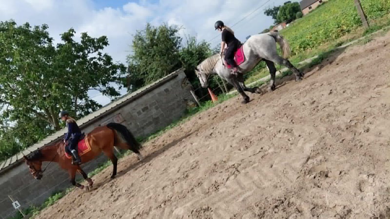 Pista di allenamento, lavoro a terra, passeggiate, ancora da scoprire per il giovane cavallo. Enorme orso di peluche!!!