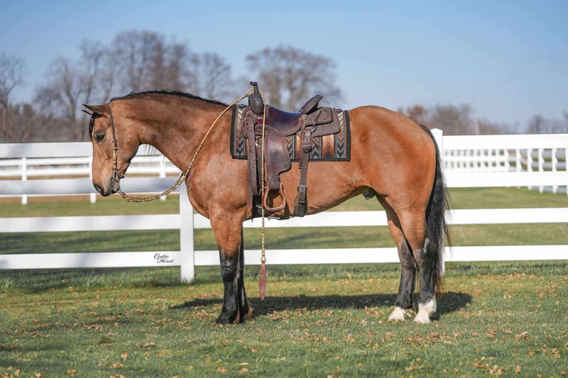 ⚜️ 𝓽𝓱𝓮 𝐇𝐨𝐫𝐬𝐞𝐦𝐚𝐧'𝐬 𝓢𝓱𝓸𝔀𝓬𝓪𝓼𝓮⚜️ Happening now thru MONDAY | DECEMBER 1st - Available EXCLUSIVELY on HorseBid's website! For more details and to register visit: www.Horsebid.com CONSIGNOR CONTACT: R & R Regal Equine 319-334-8649 LOCATION: Independence iowa BREED: Percheron/Quarter Horse Cross REGISTERED: No COLOR: Buckskin HEIGHT: 16 AGE: 5 GENDER: Gelding 🔥 Cinch – 5-Year-Old Buckskin Crossbred Gelding • 16 Hands • Rides & Drives! 🔥 Introducing Cinch, a stunning 5-year-old buckskin crossbred gelding standing a solid 16 hands. This gelding is the total package—good-minded, versatile, and beautifully broke in and out of the arena. Cinch rides English and Western with equal ease. He has three comfortable, balanced gaits and takes both contact and a loose rein willingly. Whether you want a partner for flatwork, ranch riding, or just enjoyable pleasure miles, he’s ready to go. He also drives and does well in traffic, making him an excellent candidate for someone wanting a dependable all-around horse. On the trail, Cinch is confident and sure-footed—happy to lead, follow, or ride in a group. He’s seen a variety of terrain and handles new environments with a steady, sensible attitude. Cinch is the kind that turns heads everywhere he goes and has the demeanor to match. Suitable for riders who want a handsome, capable, and versatile gelding to enjoy for years to come.