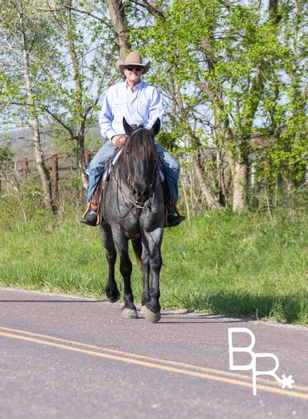 ONLINE AUCTION Place your bids at www.PlatinumEquineAuction.com Starting Bid $3500 Auction ends May 11th, 2025 Need a new saddle? Check out White Rock Saddles on our website or Facebook! This beautiful Blue Roan gelding may just be the best draft cross we have ever had through our program! Ernie is a 16hh, 5 year old with all black points and he is one sharp looking guy! He is a barn favorite here and sure to be a barn favorite in your barn. Gorgeous color with an exceptional personality and rides like an old soul. This is the type of horse for your grandma, children and anyone looking for a super honest/bombproof ride. Easy to catch. Ernie stands tied for saddling, grooming, and at the mounting block. Super pushbutton ride! If you can sit on top of him you can ride him. Absolutely no funny business and comes out to work every day you ask. Leave him sit for weeks he will be the same quiet easy going horse. Exceptional trail horse, nothing rattles him. Lead the pack or stay in the back he does not care. Easy gaits and rides on a loose rein. Started over fences and very willing. All around gelding for the entire family to enjoy. Has been in the program and Beaver Ranch and stand behind him 150%. Check out our video highlighting everything from saddling, loading, trail riding, obstacles, jumping and Walk, Jog, Lope. Sells with UTD basic PPE, Coggins, Health Papers, Vaccinations, Dentist, Farrier. We HIGHLY encourage customers to come try our horses in person before buying to ensure an excellent fit between horse and rider. We are so confident that you will love our horses that we will personally cover all travel and lodging expenses for the winning bidder if they come try before they buy/bid. While here you are welcome to try our horse any where/way that you like, on the trails, out on the ranch, in the arena or working cattle. Anyone who comes to try out horses in person will receive a 5 day money back guarantee from time the horse arrives in your possession. Also included will be the option to receive a 1 hour riding lesson with Beaver Ranch to better learn how to communicate with your new horse. NOW AVAILABLE!- Facetime/Skype video call meet and greet with Ernie. Anything from handling/saddling to riding can be accommodated subject to availability. For more information on Ernie or to schedule a time to visit Ernie please contact Beaver Ranch Mike 410-490-7384 or Lindsey 443-786-5611. ONLINE AUCTION Place your bids at www.PlatinumEquineAuction.com Starting Bid $3500 Auction ends May 11th, 2025 Need a new saddle? Check out White Rock Saddles on our website or Facebook!