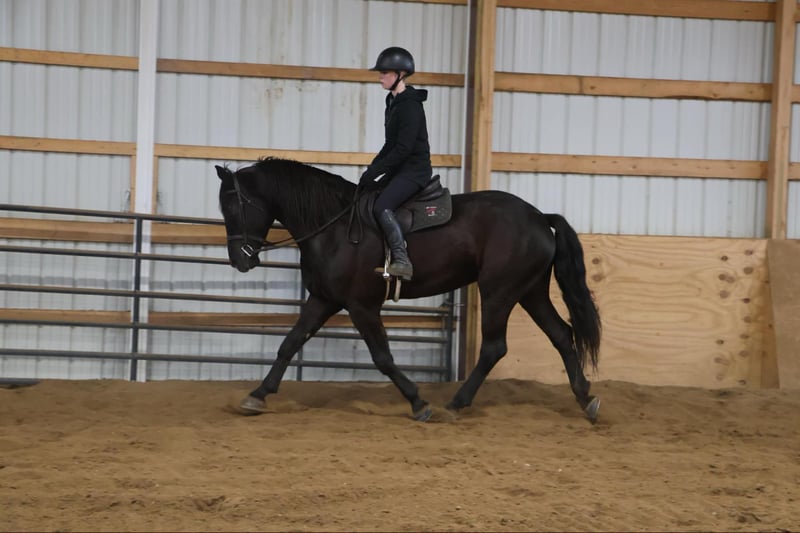 ONLINE AUCTION Place your bids at www.PlatinumEquineAuction.com Starting Bid $3500 Auction ends April 13th, 2025 Need a new saddle? Check out White Rock Saddles on our website or Facebook! I’m excited to introduce you to Star! He stands 16.1 at 5 years old and is a beautiful jet black with a big star on his forehead. He has excellent conformation, strong bones a well developed top line and solid hooves. Star is the definition of what a sport horse should be. He is a draft cross. He a great size, has the sensibility, Athleticism, attitude confirmation and movement. Star is like riding a couch. He has 3 lovley gaits a ground covering walk a floaty trot and the most rhythmical canter you will ever dream of. Star is soft and light in your hand moves on and off seat and leg with ease and is very supple in his movements. He knows all lateral movements. This gelding is sharp as a tack but yet Gentle as a kitten. He really shines out trails! He loves adventures. Star is an absolute blast to hack in the fields. He goes out alone or in a group. He’s been on several hunter paces. To add to his resume this boy has lots of miles on the trails and woods water brush wild life all no problem. He would be amazing as a fox hunter! He’s happy to take his time and follow or he will lead the way. He is also broke to drive! This is a hard combination to find. Star is quiet and comfortable enough for the kids, steady and dependable for the timid riders while being very fun for a rider who knows something. I can go on for hours about how fantastic he is but I’ll stop hear so you can enjoy the video. He speaks volumes for himself. Star lives in Howell, MI 48855. Please call or text Ellesse Schwartz at 248-390-6831 for more information. ONLINE AUCTION Place your bids at www.PlatinumEquineAuction.com Starting Bid $3500 Auction ends April 13th, 2025 Need a new saddle? Check out White Rock Saddles on our website or Facebook!