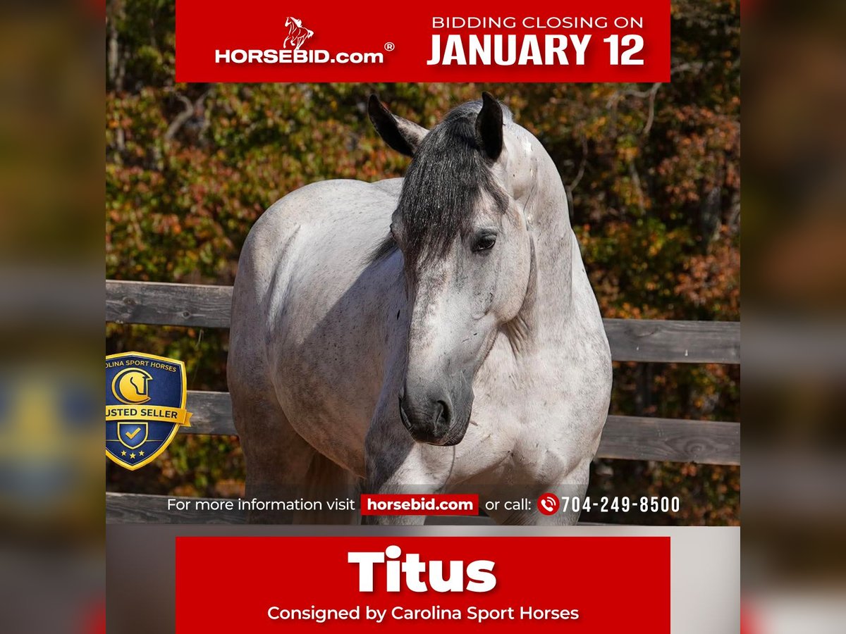 ♦️𝐍𝐄𝐖 𝐘𝐄𝐀𝐑'𝐒 𝑬𝒙𝒕𝒓𝒂𝒗𝒂𝒈𝒂𝒏𝒛𝒂♦️ Happening now thru MONDAY | JANUARY 12th - Available EXCLUSIVELY on HorseBid's website! For more details and to register visit: www.Horsebid.com CONSIGNOR CONTACT: Carolina Sport Horses 704-249-8500 LOCATION: Clover, SC BREED: PERCHERON X FRIESIAN DRAFT X REGISTERED: No REGISTERED NAME: TITUS COLOR: DAPPLE GRAY HEIGHT: 16.2 AGE: 6 GENDER: Gelding Confidence. Class. Capability. Titus is the embodiment of all three. This beautifully schooled gelding combines the elegance of a dressage mount with the heart and athleticism of a true event horse — yet remains quiet, kind, and steady enough for riders who value safety above all else. Standing 16.2 hands and 6 years old, Titus is built to impress — uphill, balanced, and expressive in every gait. He has been carefully and correctly educated, and it shows in everything he does. His lateral work is confirmed, his transitions are soft and prompt, and his responsiveness to the aids makes him a joy to ride. Whether you’re polishing movements in the dressage arena or heading out on a relaxed trail ride, Titus carries himself with the same composure and grace. In the field, he is an absolute athlete — bold and confident over fences, brave across country, and reliable in a group or alone. He loves to jump, hunt, and explore, always giving his rider confidence and control. His work ethic and willingness make him an ideal candidate for riders wanting to compete in dressage, eventing, or fox hunting, without sacrificing sanity or safety. Above all, Titus is a horse you can trust. He’s steady, forgiving, and genuinely cares about his rider’s well-being — a rare combination of talent and temperament that makes him perfect for senior riders or anyone who can’t afford a misstep. With Titus, you get a partner who listens, learns, and looks after you every ride. Safe. Skilled. Spectacular. Titus is the complete package — and ready to carry his next rider with both confidence and class. *All of our descriptions are OUR OPINION and ARE NOT FACTS. They represent how the horse responded and behaved while in our care. Horses can change at any time as they are living, breathing animals. There are no warranties expressed or implied via the descriptions above*PLEASE READ OUR BUYERS GUIDE PRIOR TO BUYING OR BIDDING ON ANY HORSE WE HAVE AVAILABLE. Interested in bringing Titus home? Give us a call today! Please take the time to read our Buyers Guide to answer any questions or concerns you may have. Contact Us Call or TEXT 704.249.8500