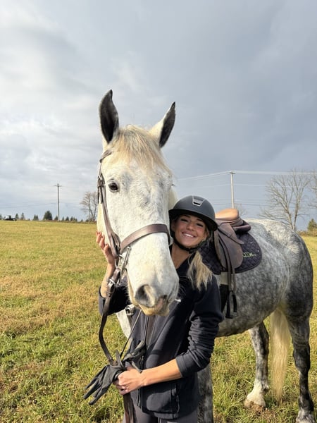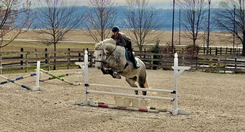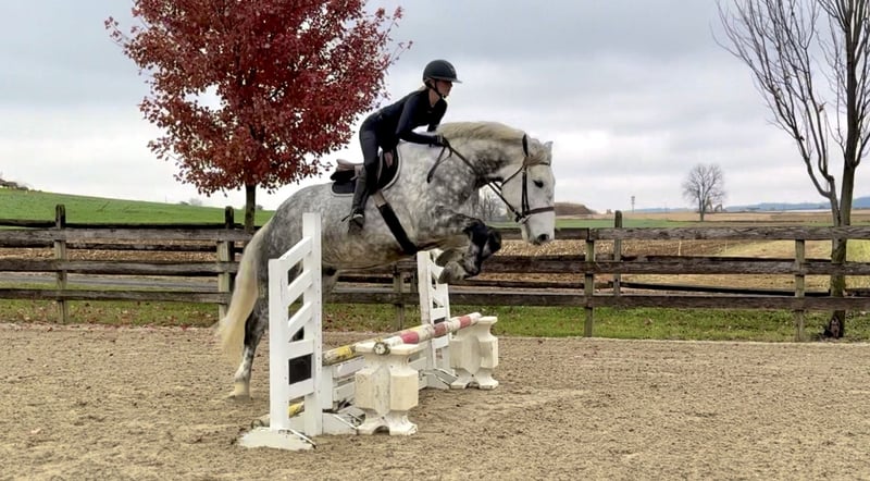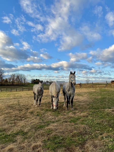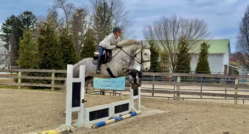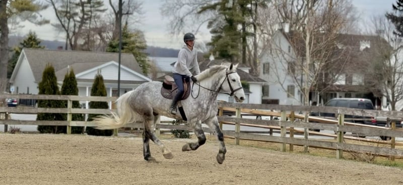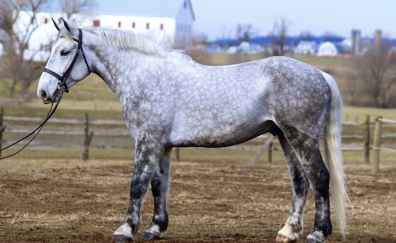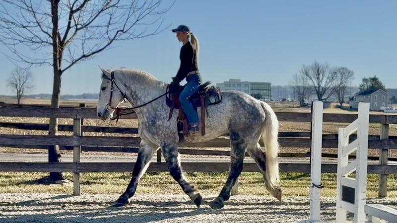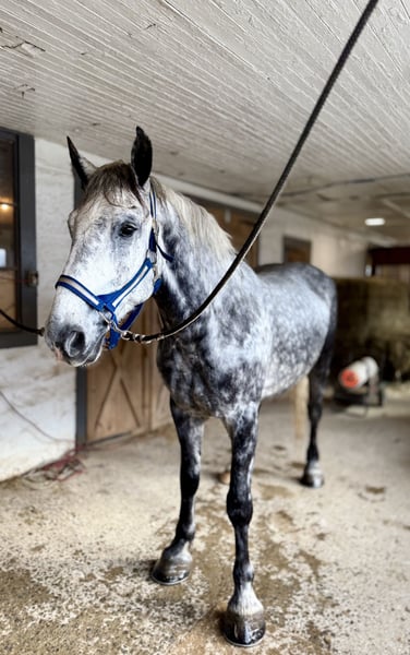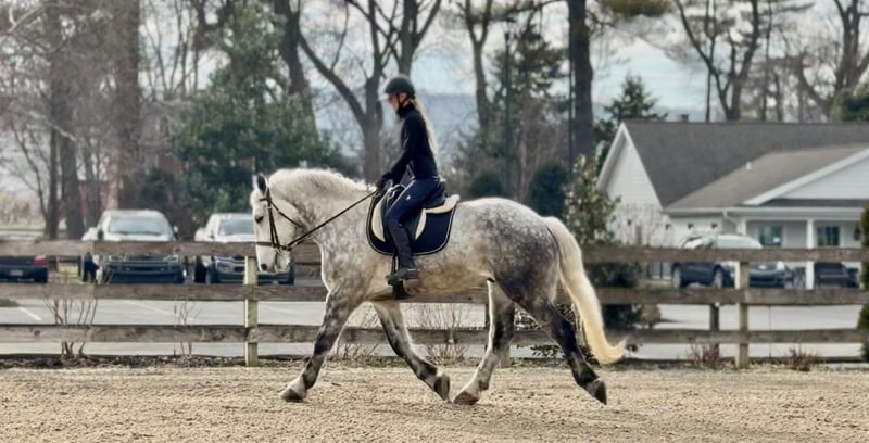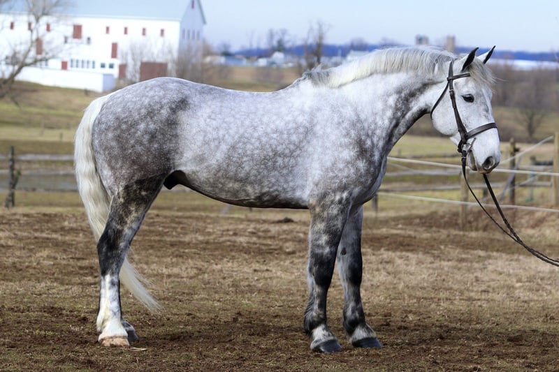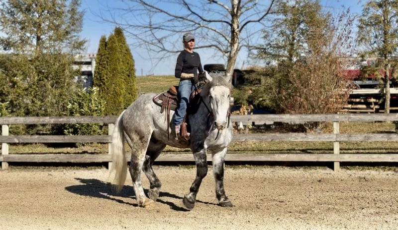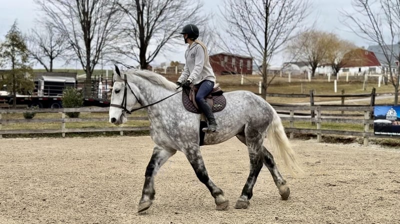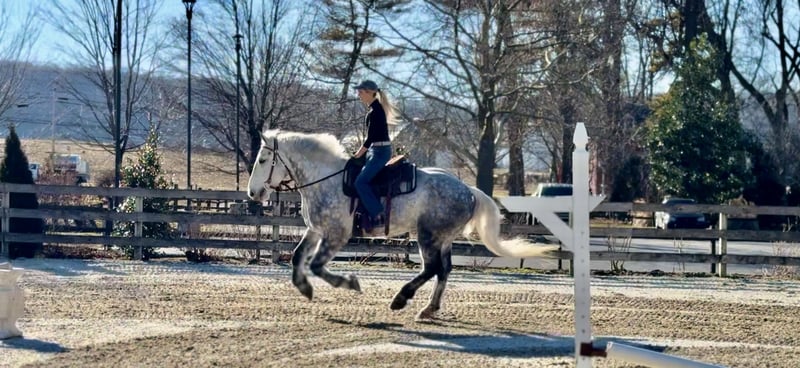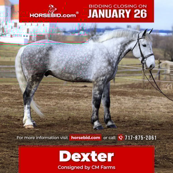 𝐉𝐀𝐍𝐔𝐀𝐑𝐘 ⭐️𝑨𝒍𝒍 𝑺𝒕𝒂𝒓 𝑳𝒊𝒏𝒆𝒖𝒑⭐️ Happening now thru MONDAY | JANUARY 26th - Available EXCLUSIVELY on HorseBid's website! For more details and to register visit: www.Horsebid.com CONSIGNOR CONTACT: CM Farms 717-875-2061 LOCATION: Gap, PA BREED: Perch/QHx REGISTERED: No REGISTERED NAME: Dexter COLOR: Dapple Grey HEIGHT: 16.3-17 AGE: 6 GENDER: Gelding Meet ✨Dexter✨! This big boy is a 6-year-old, 16.3–17hh PerchX gelding. He is incredibly eye-catching, covered in dapples with a long, flowing tail that reaches the ground. He always wears the sweetest expression! He’s broke to ride Western and English and has also been started in harness. This handsome boy will make someone an incredibly fun and versatile partner. Under saddle, Dexter has a solid walk, trot, and canter in both directions in the arena. He’s sturdy, sensible, and well-balanced. He’s an easy horse to ride—right in the perfect in-between of whoa and go—and he’s responsive to both seat and voice aids. For a bigger build, he carries himself very well and shows surprising athleticism over fences. He’ll happily pop over crossrails and solid fences, and he has schooled up to 2’6” with scope for more. He’s also been cross-country schooling and never hesitated at a thing—he even handled the ditch combination beautifully without batting an eye. On the trail, Dexter has plenty of miles and truly enjoys being out. He keeps his steady demeanor and is happy to go anywhere you put him in the group. He gets along well with other horses and doesn’t mind if one rides up a little close. He’s been trailered out to several local trail systems and always behaves perfectly. He also went to multiple hunter paces this fall and jumped everything confidently. He would be a fun one to take out fox hunting. He’ll cross water, navigate tight wooded paths, and lope across open fields—he’s simply a fun, enjoyable partner to ride. He’ll even lay down to get on and off! Dexter had one home before coming to us, and understandably took some time to settle into our barn. He can be nervous on the ground, but he never acts out or becomes naughty—he just needs someone patient to give him reassurance, hold his hand, and help build his confidence. He truly bonds with “his person,” and he’s funny in that he relaxes the moment you get on his back; it’s like his worries melt away under saddle. The world can feel big and scary for him, and we don’t hold that against him. He stands in crossties or a straight tie for grooming and tacking. In true draft fashion, he needs continued work with picking up his feet and currently requires stocks for shoeing. We are continuing to work on this until he leaves our care, and he’s already made leaps and bounds of progress. While he is likely suitable for a beginner rider in the saddle, he should go to someone with at least some experience to help guide him on the ground and continue building his confidence. Dexter is a genuinely incredible young horse with a bright future, and we’re committed to finding him the great home he deserves.