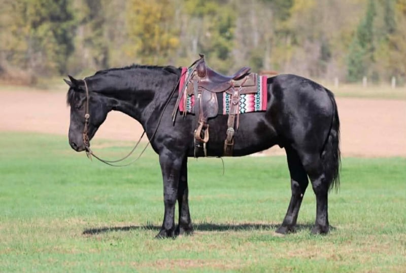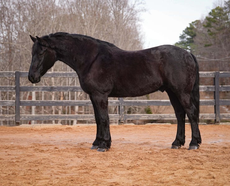 💎 𝐓𝐇𝐄 𝓓𝓲𝓪𝓶𝓸𝓷𝓭 𝐒𝐇𝐎𝐖𝐂𝐀𝐒𝐄 💎 Happening now thru MONDAY | FEBRUARY 23rd - Available EXCLUSIVELY on HorseBid's website! For more details and to register visit: www.Horsebid.com CONSIGNOR CONTACT: Carolina Sport Horses 704-249-8500 LOCATION: Clover, SC BREED: Percheron x Quarter Horse REGISTERED: No REGISTERED NAME: TOBIAS COLOR: Black HEIGHT: 16.3-17 AGE: 6 GENDER: Gelding Meet Tobias… Tobias is the definition of presence, power, and polish. This striking jet-black crossbred gelding stands an impressive 16.3–17 hands and offers the rare combination of size, substance, and true rideability. Tobias brings a proven foundation that you simply cannot manufacture. Having been used for every job on the ranch — from gathering and doctoring cattle to performing under bright lights as a rodeo flag horse — he is seasoned, steady, and completely unfazed by atmosphere. Loud music, busy environments, new venues — he handles it all with confidence and composure. Since joining our program, Tobias has stepped beautifully into English work and truly shines in this discipline. He rides willingly in a correct, balanced frame, is soft in the bridle, and maintains a steady rhythm that makes him uncomplicated and enjoyable. His transitions are smooth, his canter is comfortable and adjustable, and he offers the kind of forgiving nature that makes him suitable for even the most beginner of riders. Under saddle, he remains the same honest, point-and-shoot partner he has always been — whether you choose to ride him Western one-handed, explore dressage fundamentals, pop over fences, or simply enjoy a relaxed hack. He has recently been started over fences and took to it naturally and confidently. In the barn, Tobias is kind, personable, and easy to be around. He has a gentle eye, a big heart, and a personality that makes him a barn favorite. He is straight, clean-legged, sound, and requires no special maintenance. Tobias is the type of horse that turns heads when he walks in — but more importantly, he is the type you look forward to riding every single day. Big enough for a taller rider, quiet enough for a novice, and versatile enough to enjoy in multiple disciplines, he is a rare find in today’s market. If you’ve been searching for a large, jet-black gelding with experience, training, and the temperament to match — Tobias is ready. Clean vetting on file from this week. Contact Us Caleb Wilson 704.249.8500