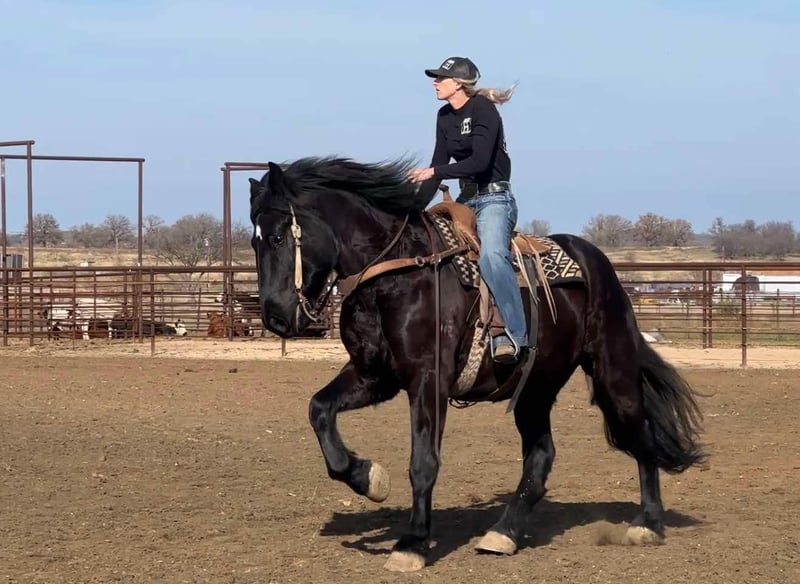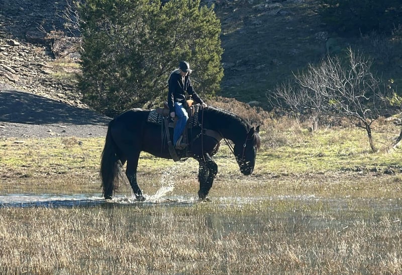 ONLINE AUCTION Place your bids at www.PlatinumEquineAuction.com Starting Bid $3500 Auction ends January 5th, 2024 Need a new saddle? Check out White Rock Saddles on our website or Facebook! Sniper is a big, jet black draft cross gelding standing 16.3 hands tall and is 4 years old. He is athletic, and very broke and responsive. Sniper can show lope fancy circles with natural collection and beautiful lead departures. He is super soft and light to ride. He will ride English or Western and is broke to drive a cart and farm equipment. Sniper is awesome out on the ranch and trails. He is perky eared and happy to go do things. He is kind eyed, quiet, and always listening to his rider. He has excellent ground manners and hauls well. He is the same horse every time we pull him out and has never offered to be anything but a complete gentleman. Sniper is sound and UTD. FMI call/text Holland Horse Co. Chanel 559-978-6320. We are happy to answer questions or help arrange shipping nationwide. ONLINE AUCTION Place your bids at www.PlatinumEquineAuction.com Starting Bid $3500 Auction ends January 5th, 2024 Need a new saddle? Check out White Rock Saddles on our website or Facebook!