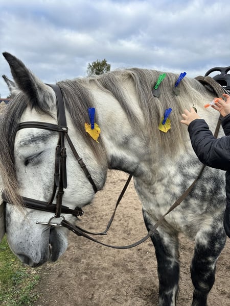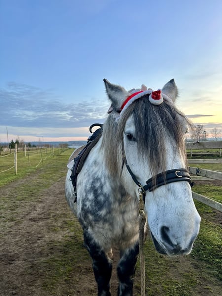 For Sale: Beautiful Percheron Gelding We are offering an impressive Percheron gelding, born in 2019. This elegant black and white pinto stallion measures 16.1 hh and impresses with his strong build and calm, friendly demeanor. He is ideal for leisure riding and delights with his pleasant temperament and versatility. The horse is healthy, regularly groomed, and experienced in handling with children, teenagers, and adults. He is perfectly suited for riders seeking a reliable and confident leisure horse. After gentle bitless training, he was primarily used 3-4 times a week as a therapy horse. Changing clients was never an issue. He undoubtedly impresses with his size, calmness, and balanced nature. I also see Ferdinand in the driving discipline. However, I cannot offer him this activity and am reducing my herd for personal reasons. If you are interested or have further questions, please do not hesitate to contact me. Feel free to arrange a viewing and a test ride!