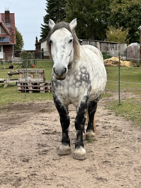 Verkaufe wunderschönen Percheron-Wallach Zum Verkauf steht ein beeindruckender Percheron-Wallach, geboren im Jahr 2019. Dieser elegante Apfelschimmel besticht durch sein kräftiges Stockmaß von 167 cm und seine ruhige, freundliche Art. Er ist ideal für die Freizeitgestaltung und begeistert durch sein angenehmes Wesen sowie seine Vielseitigkeit. Der Pferd ist gesund, regelmäßig gepflegt und kennt den Umgang mit Kindern, Jugendlichen sowie Erwachsenen. Er eignet sich hervorragend für Reiter, die ein zuverlässiges und charakterstarkes Freizeitpferd suchen. Nachdem er schonend Gebisslos eingeritten wurde, war er hauptsächlich ca.3-4 x/ Woche als Therapiepferd im Einsatz. Wechselnde KlientInnen waren nie ein Problem. Er besticht zweifelsfrei durch seine Größe und ruhige und ausgeglichene Art. Ich sehe Ferdinand auch im Bereich des Fahrens. Diese Möglichkeit kann ich ihm jedoch nicht bieten und ich muss aus privaten Gründen meinen Bestand reduzieren. Bei Interesse oder weiteren Fragen stehe ich Ihnen gerne zur Verfügung. Vereinbaren Sie gerne einen Termin für eine Besichtigung und eine Proberunde!