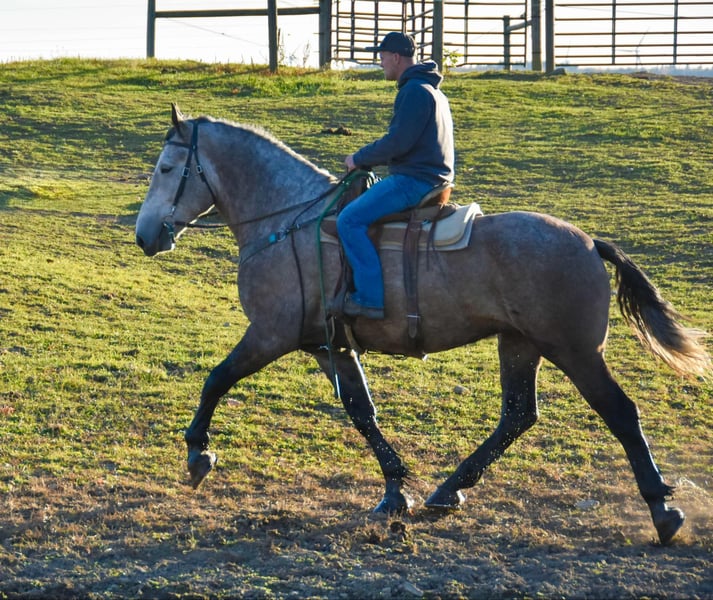 ONLINE AUCTION Place your bids at www.PlatinumEquineAuction.com Starting Bid $3500 Auction ends December 1st, 2024 Need a new saddle? Check out White Rock Saddles on our website or Facebook! Noah is a 6-year-old draft cross gelding standing 17.3 hands. Being a big guy, he walks, trots, and canters with poise. He knows his leads and can canter a nice circle in the arena. He is easy to mount and dismount and stands perfectly still for the mounting block! Noah clips well, easily loads in the trailer, and stands like a gentleman for the vet. His ground manners are excellent; he will stand all day tied with no fuss. He has been exposed to various farm animals and gets along with everyone. Noah will cross logs, bridges, water, and anything else you may encounter on the trail without hesitation. He will trail ride alone or in a group; traffic doesn’t phase him. He will go Western or English. Noah can ride all day on the trail or stand around and be loved. He is a big puppy and loves attention. He is not a bully in the pasture and gets along with mares and geldings. We have put him through our obstacle course, and he does great with all the obstacles. Tarps, bull whips, hills, or pulling objects, nothing bothers him. Under saddle, Noah will side pass and back with ease. He is wearing shoes all the way around due to the rocky conditions around the farm. He easily picks up his feet, but we use a stock to shoe him. Noah sells a 100% sound with No vices! Visit our Facebook page, Wolcott’s Versatility Horses and Training, for more information on our horses. Contact Dayton at 585-734-0169 for more info on Noah! Located in Warsaw, NY. ONLINE AUCTION Place your bids at www.PlatinumEquineAuction.com Starting Bid $3500 Auction ends December 1st, 2024 Need a new saddle? Check out White Rock Saddles on our website or Facebook!