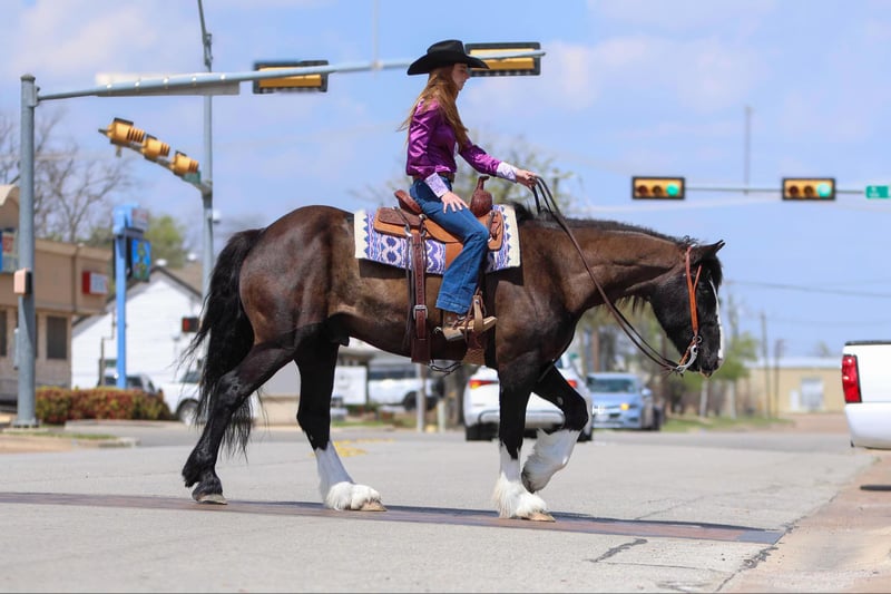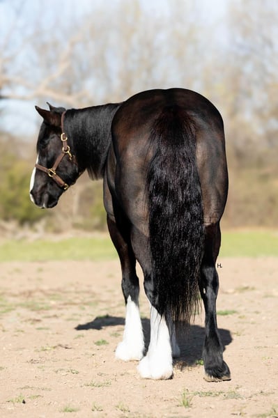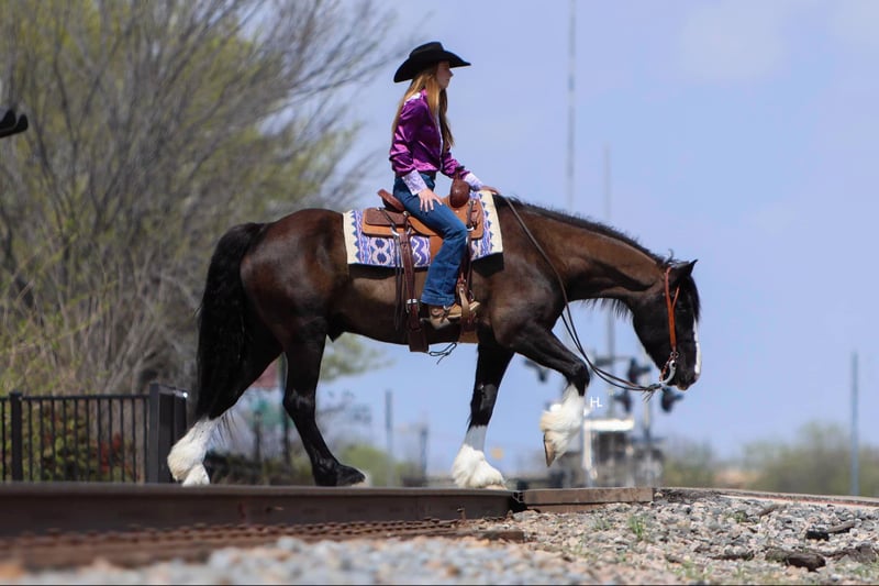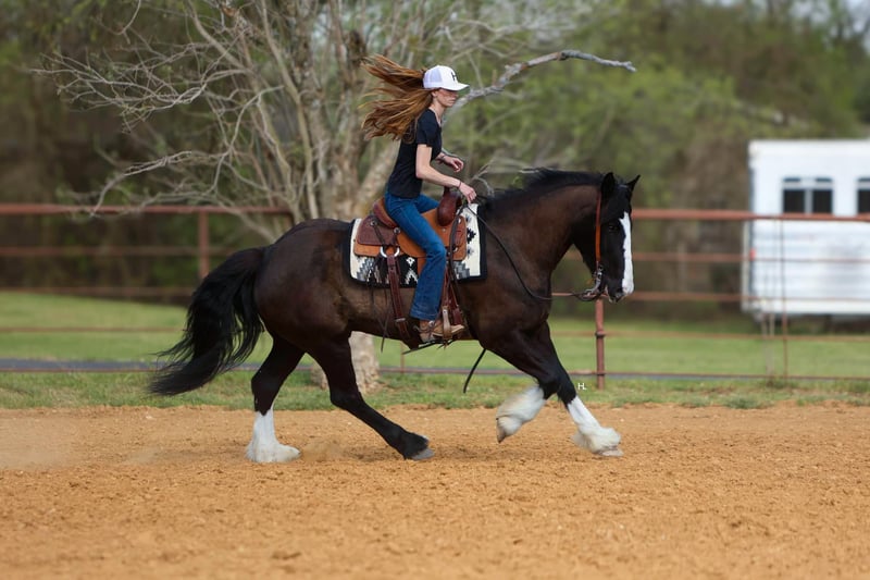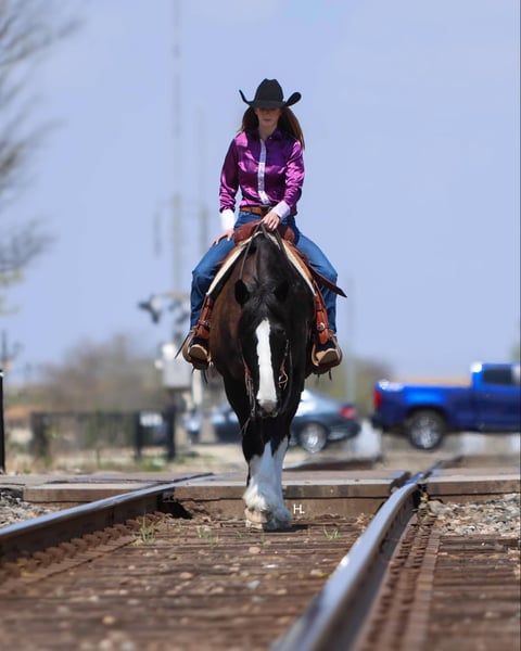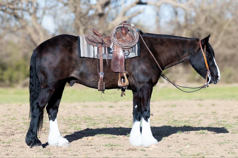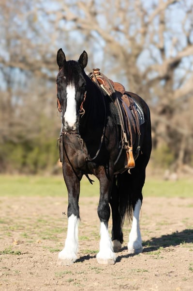 ONLINE AUCTION Place your bids at www.PlatinumEquineAuction.com Starting Bid $3500 Auction ends April 13th, 2025 Need a new saddle? Check out White Rock Saddles on our website or Facebook! Leroy is what every draft cross lovers dreams are made of. This 8yr old, 16hh, 1350lbs, Quarter Horse/Draftcross Gelding that has the puppy dog demeanor of a draft that everyone adores along with the rock solid conformation but has the ability and versatility to perform like a quarter horse half his size if needed and has the resume to prove it. Dad can use him to do ranch work, mom can ride him out on the trails or take him over fences, and the kids can play around him safely and dote on him to their hearts content. Leroy is truly a horse the whole family can and will enjoy. Leroy was bred and raised in Canada and then used to do ranch work in Canada, Montana, and here in Texas. He’s has a great work ethic and there’s no job too big for him. From doctoring in the pasture to dragging calves to the branding fire, Leroy has done it all and is ready for any job you need him to do. With his ranch work history especially in the mountains, it’s no surprise that Leroy is one of the most surefooted horses to grace our program. From mountainous terrain to the plains, he will safely get you to do your destination every time. Leroy crosses creeks and bridges with ease, navigates through thick brush safely, is careful and strategic about his foot placement when going up and down steep terrain, has no qualms when it comes to vehicle or pedestrian traffic, and if you’re on a State Trail way you’re sure to get compliments on him from passerby’s. In the arena, Leroy shines just as bright. Whether you’re riding him under english tack or western, Leroy is a smooth and fancy ride that attracts attention. He is one handed broke, side passes both directions, picks up the correct leads, can turn around slow and correct, and is tuned in to not only your seat, legs, and hands, but your voice as well. A simple sit on your pockets with a bump of the reins and an “easy” can have him going around at a pace slower than some pleasure horses and a bump with the magic “whoah” will have him stopping on a dime. Leroy is comfortable to ride in all gaits thanks to his natural cadence accentuated by his training. He has a lovely ground covering walk, a fantastic jog that can be bumped up to a comfortable working trot, as well as a lope that makes 90% of other horses his size 100% jealous. We truly don’t believe there is anything Leroy can’t do as he’s exceeded every expectation while in our program. He will carry a flag, has been schooled successfully up to 3’6” in both show jumping and cross country with a few prelim and intermediates thrown in, goes around lovely on the flat under english tack, happily keeps a toddler safe while riding double with a parent as well stepping up to the plate to be a huge blank canvas for said toddler’s finger painting. Leroy isn’t just a ranch horse, he’s a horse the whole family can enjoy doing so many different things with thanks to his mind and versatility. When it comes to Leroy’s daily care and handling, he is an absolute gentleman. Leroy has been easy to catch each time we walk out to get him and can typically be heard before seen with his greeting nicker. From grooming to tacking up, Leroy will remain like a patient statue (bonus points, you don’t need any specialty draft tack for him). He’ll let you take your time mounting and unmounting, and you can also safely use a mounting block if needed. Leroy is good to bathe and clip as well. The first time your farrier lays eyes on Leroy he might not be your biggest fan, but after working on Leroy, whether it’s just a trim or a full set, your farrier is sure to like him too. If you’re often trailering to different places, you can rest easy knowing Leroy will always load into your trailer and hauls without any fuss. Leroy has had no previous health or lameness issues, requires no special care or maintenance, is UTD on all routine care, and is ready to become the horse you’ve always wanted to own. We invite you to come meet this exceptional gelding at our place in Weatherford, TX. PPEs welcomed and we can help assist setting up hauling to wherever you call home. For any questions and to talk about if Leroy is the right fit for you, feel reach to out to H Spur Performance & Versatility Horses Sarah at 817-366-6123. To see his other 20+ videos and additional pictures, please visit his page on our website www.hspurhorses.com/leroy. ONLINE AUCTION Place your bids at www.PlatinumEquineAuction.com Starting Bid $3500 Auction ends April 13th, 2025 Need a new saddle? Check out White Rock Saddles on our website or Facebook!