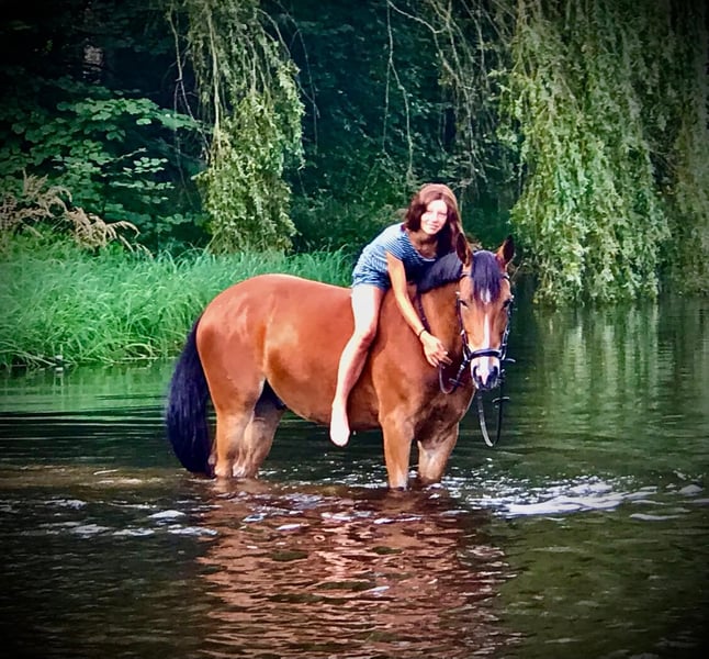 Wegen Umstieg aufs Großpferd unserer Tochter geben wir schweren Herzens unseren 10-jährigen Cookie ab. Er ist ein wundervolles, bildschönes Pony, das durch seine Doppelveranlagung bestens für vielseitige Reiter geeignet ist. Mit fünf Jahren direkt vom Züchter zu uns gekommen, wurde er immer fein geritten und schonend Schritt für Schritt in Springen, Dressur und Gelände weiter ausgebildet. Im Alltag ist er ein fröhlicher Quatschkopf, der für jeden Spaß zu haben ist, kennt Bodenarbeitslektionen, Baden im See, Reiten mit Halsring und ohne Sattel. Wenn er zwar konsequent aber ohne Druck geritten wird, wächst er über sich hinaus. Deshalb sehen wir ihn nicht als Anfängerpony sondern in den liebevollen Händen eines schon etwas fortgeschritteneren Reiters, der seine Vielseitigkeit schätzt und ihn weiter fördert, ohne ausschließlich auf Turniererfolge abzuzielen. Cookie ist kerngesund und deckt auch größere und schwerere Reiter sehr gut ab. Er ist regelmäßig geimpft, entwurmt und beim Zahnarzt vorgestellt (zuletzt 3/26) und hat gesunde, gute Hufe (bei uns für Geländestollen 4-fach beschlagen). Eine Auswahl seiner Erfolge: 1. Reserve beim Bundeschampionat der 6-jährigen Geländeponys L-Dressur ausgebildet A-Dressur mehrfach platziert Zahlreiche Siege und Platzierungen in E- und WBO-Dressur L-Springen ausgebildet und vorgestellt A**-Springen gewonnen Zahlreiche Siege und Platzierungen von WBO- bis A-Springen A-Gelände ausgebildet und vorgestellt E-Gelände und VE gewonnen IGV-Hessen-Trophy gewonnen Landesnachwuchsvierkampf gewonnen, Bundesnachwuchsvierkampf vorgestellt Bei Interesse oder Fragen freuen wir uns auf Kontaktaufnahme.
