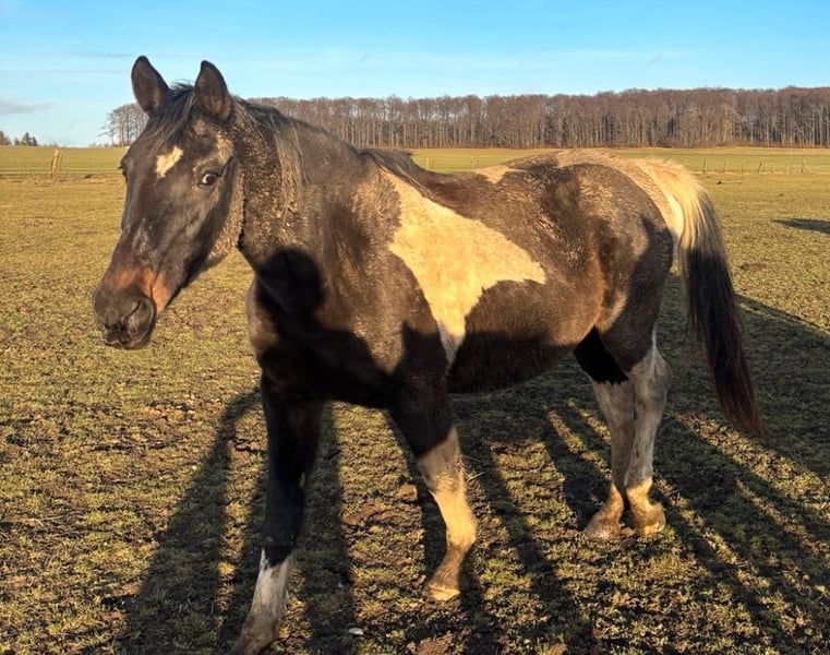 Pizula’s Carima (geb. 2006) ist eine bewährte Zuchtstute mit sehr guter Abstammung und ausgezeichnetem Mutterinstinkt. Sie wurde bei uns ausschließlich in der Zucht eingesetzt und überzeugt durch Zuverlässigkeit und ein ausgeglichenes Wesen. - Dunkelbraunschecke (Pinto) - tragend (Hengst Appaloosa) - sehr gute Mutterstute - fohlt problemlos allein - bei uns stets problemlos auf der Koppel abgefohlt - menschenbezogen - verladefromm - läuft brav als Handpferd - früher geritten - vollständige Abstammung vorhanden - interessant für Zucht und Freizeitbereich Der Verkauf erfolgt aus Altersgründen im Rahmen einer Bestandsverkleinerung eines über viele Jahre aufgebauten Pferdebestandes. Es handelt sich ausdrücklich nicht um Notverkäufe.