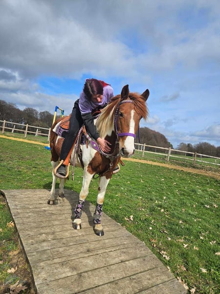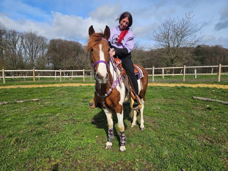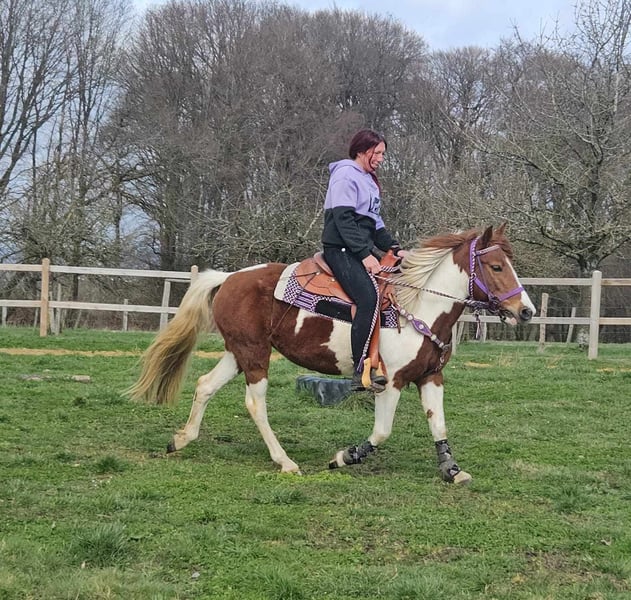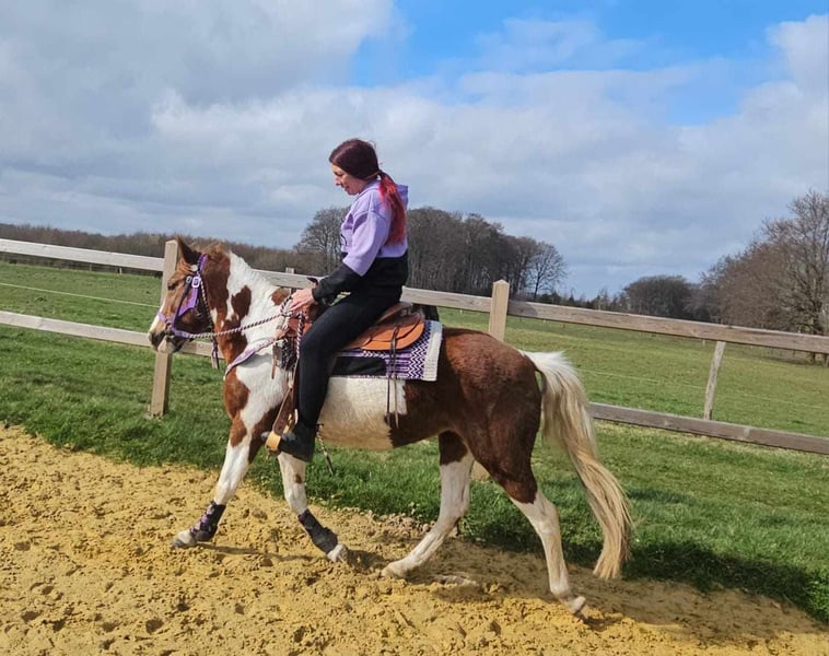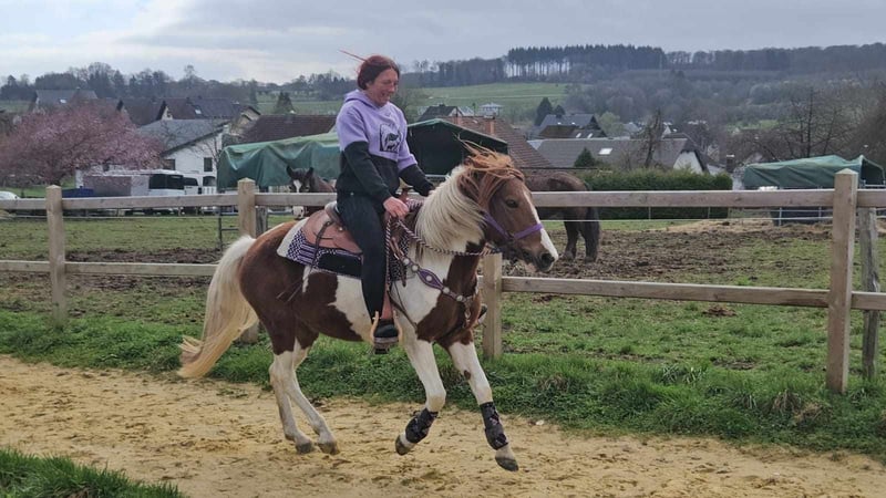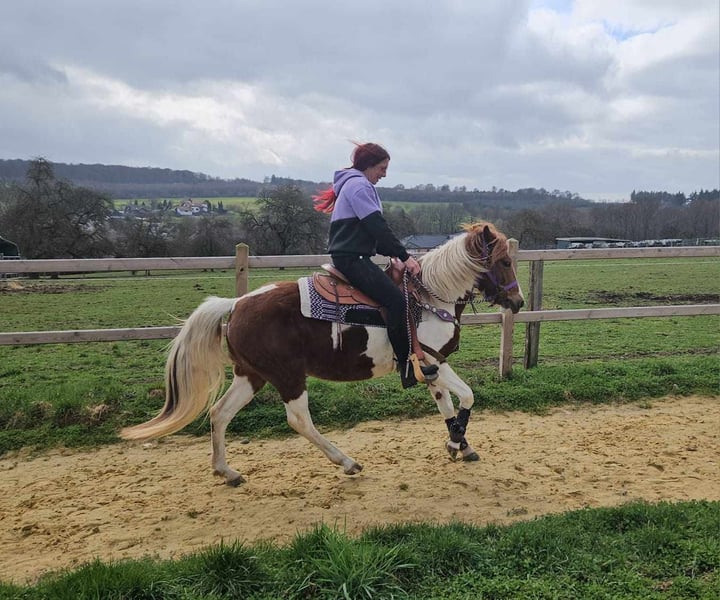 Scheckpony-Stute – brav im Umgang & angenehm zu reiten QUENIE Alter: ca. 6 Jahre Stockmaß: ca. 1,40 m Preis: 5400,- AKU vorhanden ✨ Beschreibung: Eine nette Scheckpony-Stute mit freundlichem Wesen. Im täglichen Umgang zeigt sie sich brav, unkompliziert und menschenbezogen. Unter dem Sattel ist sie angenehm zu reiten, aufmerksam und arbeitet gerne mit ihrem Reiter zusammen. Sie kennt auch die Reithalle und zeigt sich dort ebenfalls kooperativ. Ein sympathisches Pony, das sowohl im Freizeitbereich als auch für Reiter geeignet ist, die ein freundliches Pony suchen. Geeignet für: Freizeitreiter, Jugendliche oder kleinere Erwachsene, die ein unkompliziertes und nettes Pony suchen. Unsere Pferde werden regelmäßig: – entwurmt – vom Schmied betreut – osteopathisch kontrolliert Hofladen: Westernsättel, Trensen & weiteres Zubehör Transport und Equipment können auf Wunsch organisiert werden. Unser Service: ✅ 3 Monate Umtauschrecht ✅ Proberitt: 35 €, jedes weitere Pferd 25 € (bei Kauf am selben Tag angerechnet) Preisnachlass bei sofortiger Mitnahme oder Transport am gleichen Tag: • Preiskategorie 1: 100 € Rabatt • Preiskategorie 2 (ab 5.000 €): 250 € Rabatt ✅ Persönliche & ehrliche Beratung Anfragen bitte ausschließlich telefonisch: 0171 – 4001968 Erreichbar täglich von 8–20 Uhr ⚠️ Keine E-Mail oder WhatsApp ⚠️ Alle Angaben ohne Gewähr