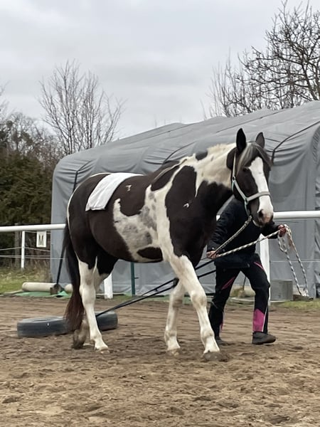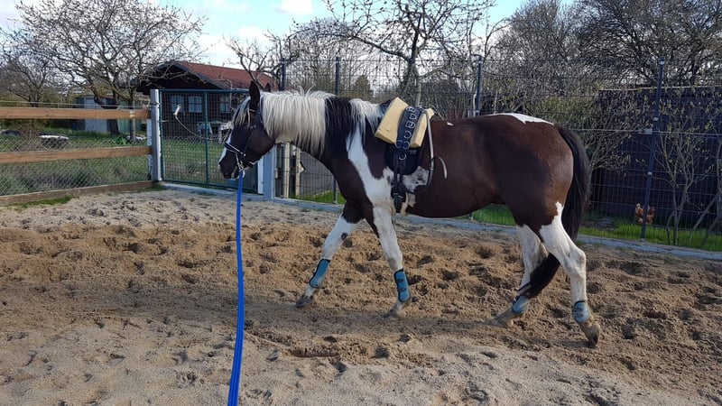 Good day, For sale is a 7-year-old gelding. He is not suitable for beginners or as a children's pony. He is traffic-safe. He is familiar with lunging, double lunging, groundwork, as well as trail riding and free jumping. Rider-wise, he is at the beginning of E level and knows pole work and small cavalettis. Father is Golden Diamond. Mother is Isa. If you have any questions, please feel free to contact me at 015906662415.