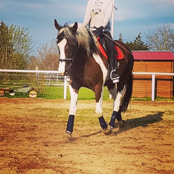 Buenos días, Se vende un caballo castrado de 7 años. No es adecuado para principiantes ni para niños. Pasó su primer año en la cría en un gran grupo con un semental hasta el destete, luego con potros de la misma edad. A los 1 año llegó a mí, donde aprendió todo con calma con el apoyo de una yegua mayor. A los 3 años y medio fue montado por primera vez. Fue completamente entrenado por mí solo. Se le enseñó a manejar el tráfico, lo que hace sin problemas de manera tranquila. También disfruta de las salidas al campo, donde se comporta muy bien, siempre con un buen impulso hacia adelante, pero siempre manejable. Disfruta mucho del trabajo en mano y del salto libre, y siempre intenta dar lo mejor de sí para agradar. Conoce la doble longe y el arnés, aunque aún no lo ha hecho. En el picadero necesita siempre algo que hacer para no aburrirse. Es un gran amigo que te acompaña en las buenas y en las malas, una vez que ha ganado tu confianza. Es muy abierto a nuevas experiencias y muy cariñoso. Lamentablemente, no puedo dedicarle el tiempo que necesita, por lo que busco a alguien que pueda trabajar con él lo suficiente, ya que es un caballo que necesita mucho movimiento y siempre requiere trabajo mental. El padre es Golden Diamond. La madre es Isa. Se puede vender con accesorios si hay interés, con un coste adicional; las sillas no están incluidas. Para cualquier pregunta, no dudes en contactar al 015906662415.
