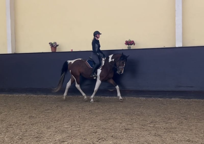 Unser hübscher Wallach Jackpot sucht ein passendes neues Zuhause. Jackpot ist 2017 geboren und hat ein Stockmaß von ca. 165 cm. Er ist auf Dressur A-Niveau ausgebildet und wurde in der Vergangenheit im Schulbetrieb bis Reiternadel auch gesprungen. 🏇 Ausbildung & Vermögen: • Sicher in den Grundgangarten • Dressurmäßig auf A-Niveau • Kennt Stangen- und Gymnastikarbeit • Springerfahrung vorhanden (bis ca. Nadelhöhe) • Lernwillig und mit Potenzial für weitere Förderung 💫 Charakter: Jackpot ist charakterlich sehr ausgeglichen und kopfklar. Er ist ein echter Engel im Umgang und liebt es Aufmerksamkeit zu bekommen. Beim Reiten wünscht er sich eine klare und sichere Kommunikation. ⚠️ Wichtig: Jackpot ist kein Anfänger- oder Schulpferd. Er braucht einen konsequenten und einfühlsamen Reiter, der ihm Sicherheit gibt und ihn klar unterstützt. 🌿 Umgang: • Im täglichen Handling unkompliziert • Kennt den Stallalltag ❤️ Für wen geeignet? Für fortgeschrittene Reiter oder ambitionierte Freizeitreiter, die ein sensibles Pferd mit Qualität suchen und weiter fördern möchten. ⸻ 📍 Platz vor Preis! Wir wünschen uns für Jackpot ein liebevolles und passendes Zuhause. Bei ernsthaftem Interesse freuen wir uns über eine Nachricht oder einen Anruf.
